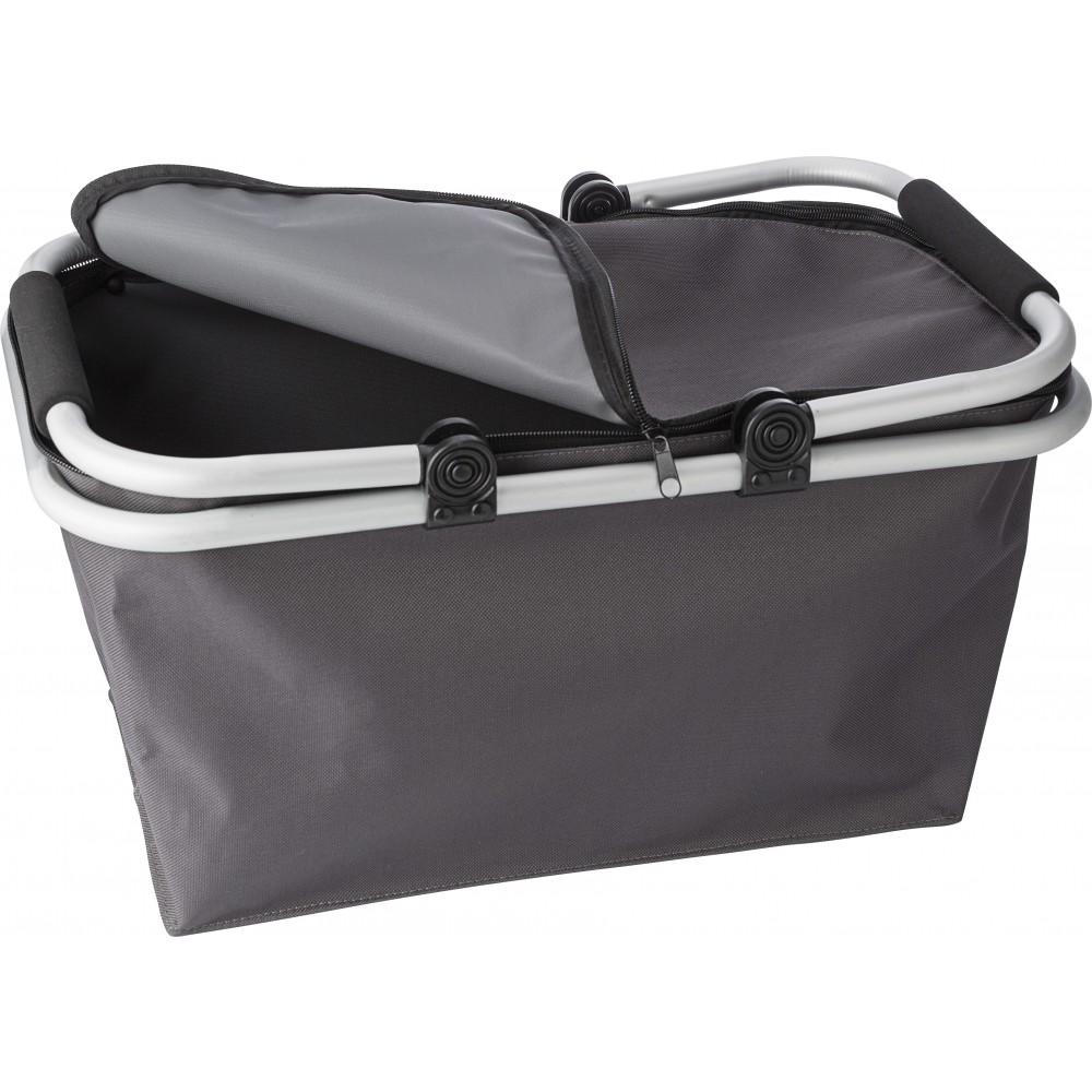 Bevásárlókosár. Összecsukható bevásárlókosár cipzáros záródással, alumínium vázzal, EVA fogóval, Oxford anyagból.