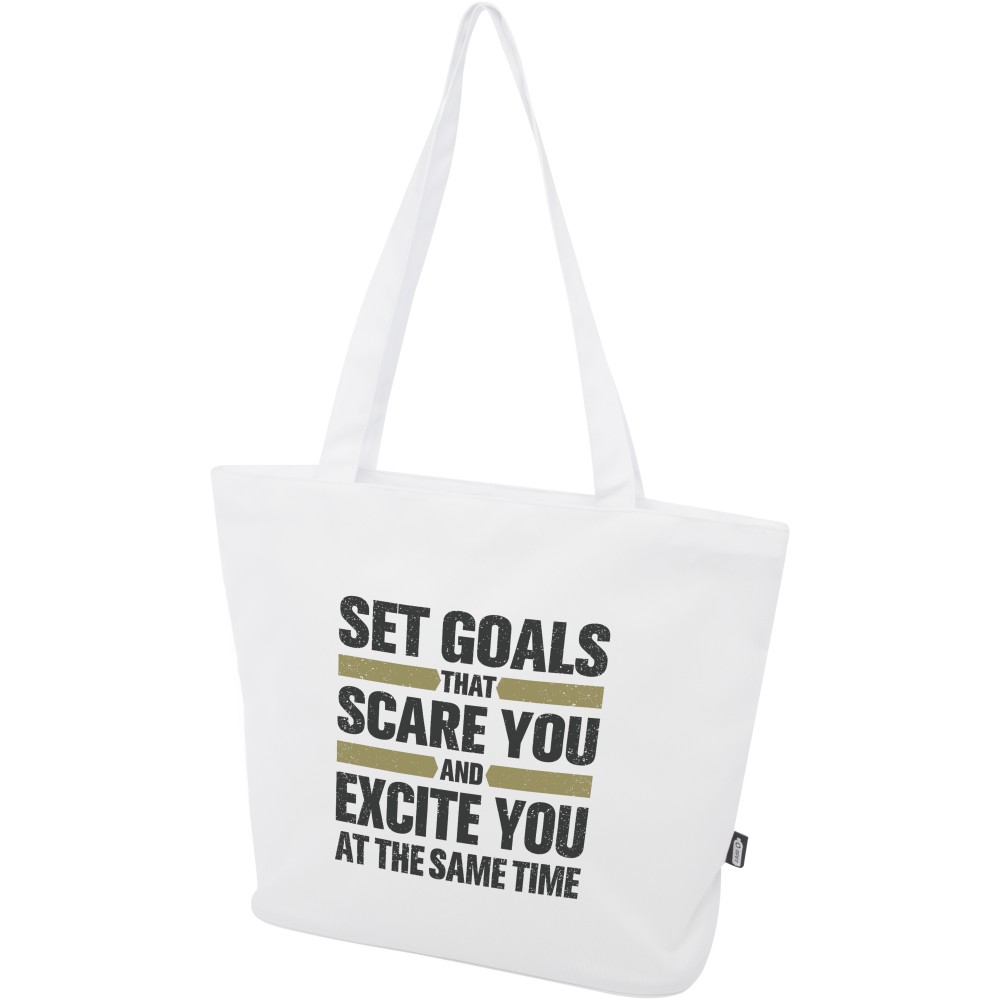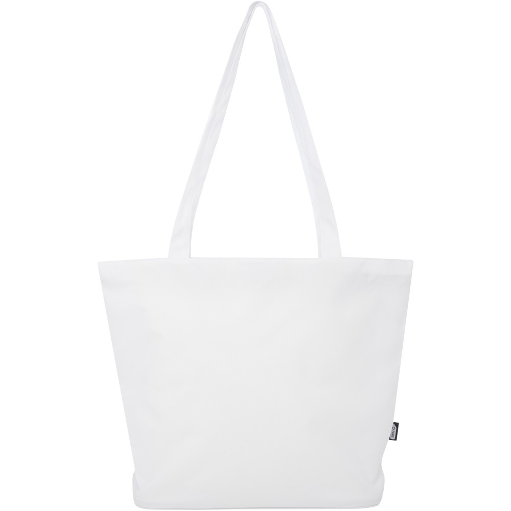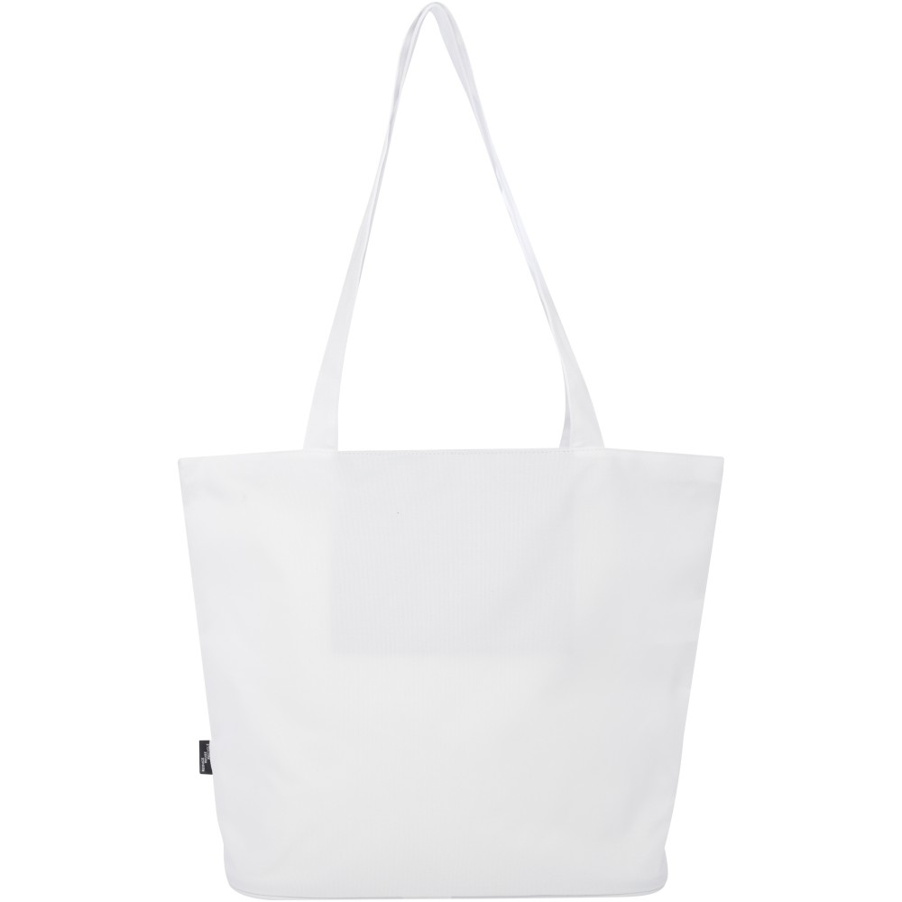 A vízlepergető 600D rPET anyagból készült Panama GRS újrahasznosított cipzáras táska tökéletes és fenntartható választás, ha rendezvényre, strandra vagy bevásárlásra készülsz. Egy cipzáras főrekesszel és egy cipzáras belső zsebbel rendelkezik, amely elég nagy a telefonod vagy más értékes holmi tárolására. Fülei 34 cm hosszúak, ezért a táska könnyen hordozható vállon. Teherbírás: 10 kg. PVC-mentes.