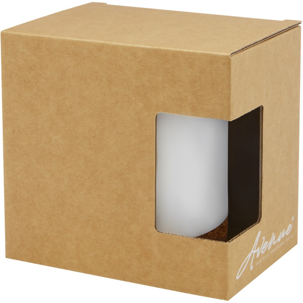 Modern kerámia bögre parafa aljjal, amely természetes megjelenést kölcsönöz. Nem szivárgásmentes. Szénsavas italokkal is használható. Mosogatógépben nem mosható, de mikrohullámú sütőben történő melegítésre alkalmas. Űrtartalom: 425 ml. Újrahasznosított karton díszdobozban.