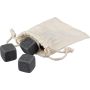4 db újrafelhasználható természetes kőből álló kockakészlet. A köveket hűtőbe kell tenni, hogy lehűljenek. Pamut zsinóros tasakban csomagolva érkezik.