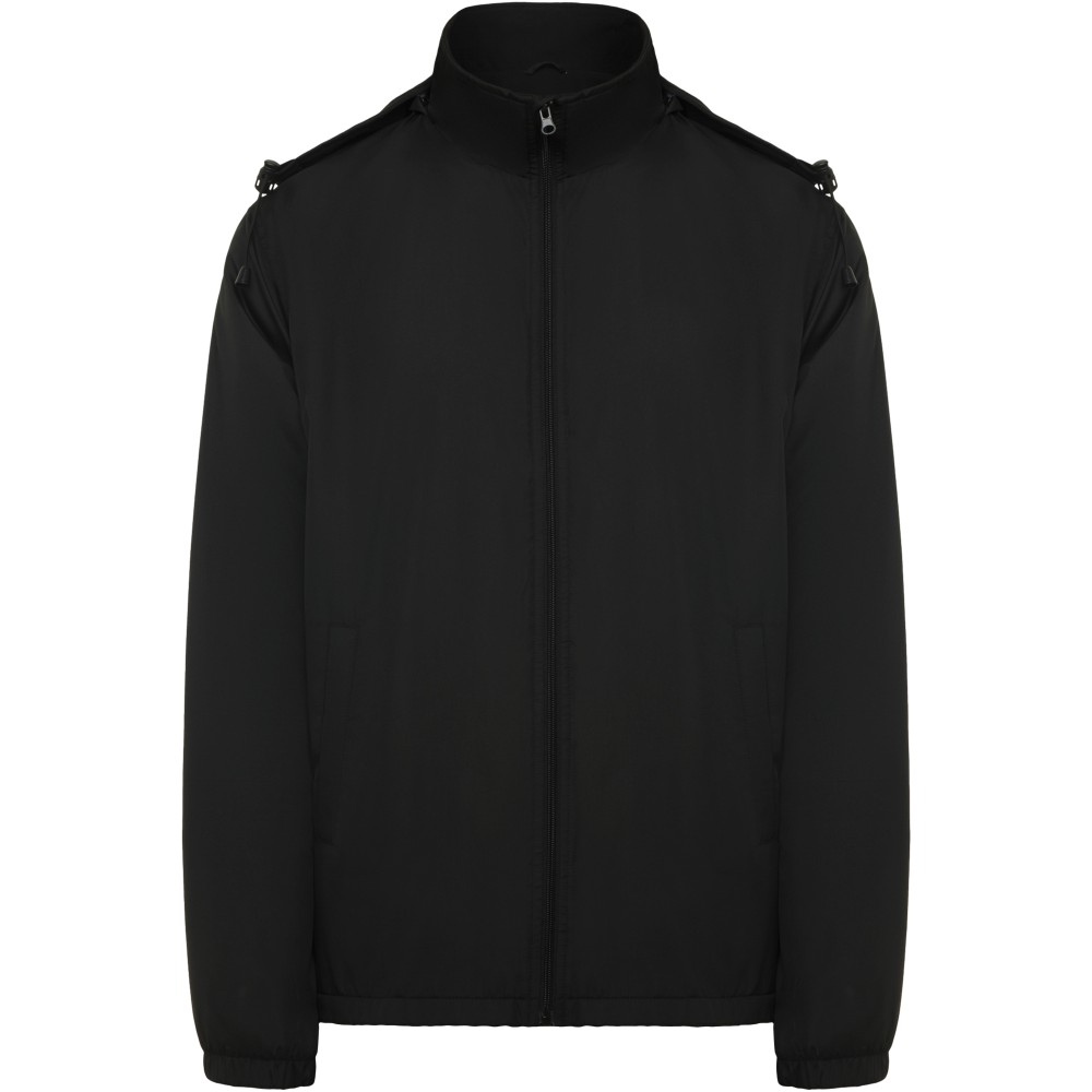 Könnyű vízálló dzseki. Magas gallér és behajtható kapucni állítóval. Mikropolár bélés. Elülső cipzár és állvédő. Gumis kézelők. Két cipzáras oldalzseb. Belső bal oldali mellzseb. Vízálló. Szélálló. 100% poliészter, 85 g/m2. Bélés: 100% poliészter, 180 g/m2, bélés, mikropolár, 180 g/m2. Töltet: 100% poliészter, 65 g/m2.