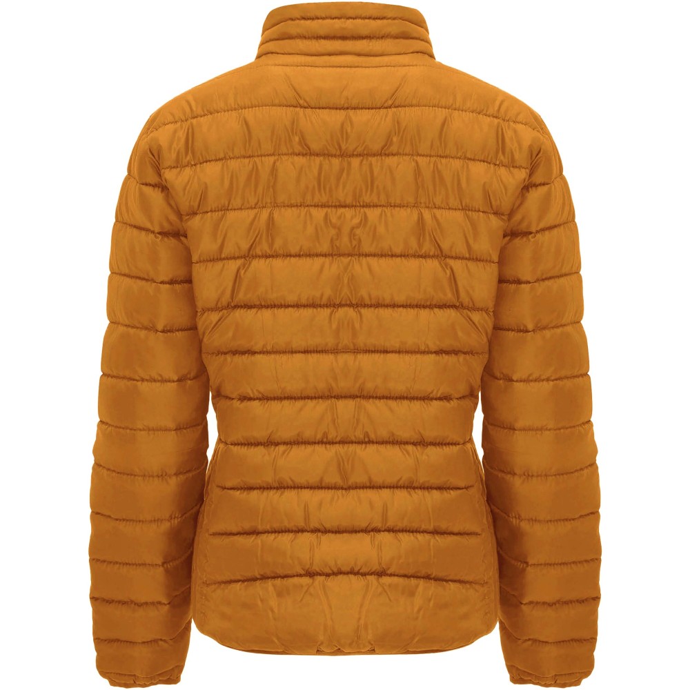 Női, karcsúsított, steppelt dzseki tollszerű tapintású töltettel, tasakkal. Fordított cipzárak, színben illeszkedő állvédővel és cipzárral. Két cipzáras elülső zseb. Gumis szegély a galléron, a kézelőn és az aljon. Kontrasztos színű bélés. Könnyű és összehajtható ruhadarab. Vízálló. Szélálló. 100% poliészter, 290 g/m2. Bélés és töltet: 100% poliészter.