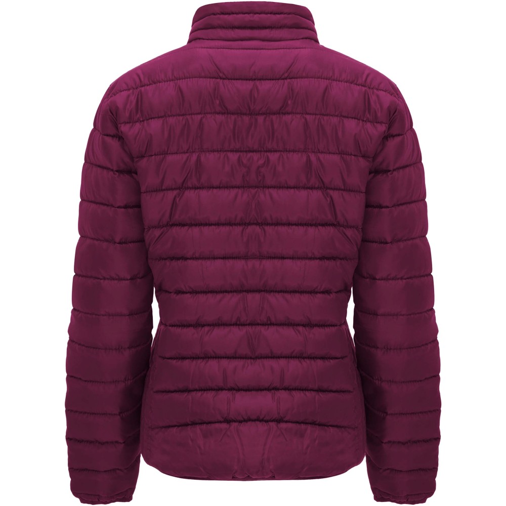 Női, karcsúsított, steppelt dzseki tollszerű tapintású töltettel, tasakkal. Fordított cipzárak, színben illeszkedő állvédővel és cipzárral. Két cipzáras elülső zseb. Gumis szegély a galléron, a kézelőn és az aljon. Kontrasztos színű bélés. Könnyű és összehajtható ruhadarab. Vízálló. Szélálló. 100% poliészter, 290 g/m2. Bélés és töltet: 100% poliészter.