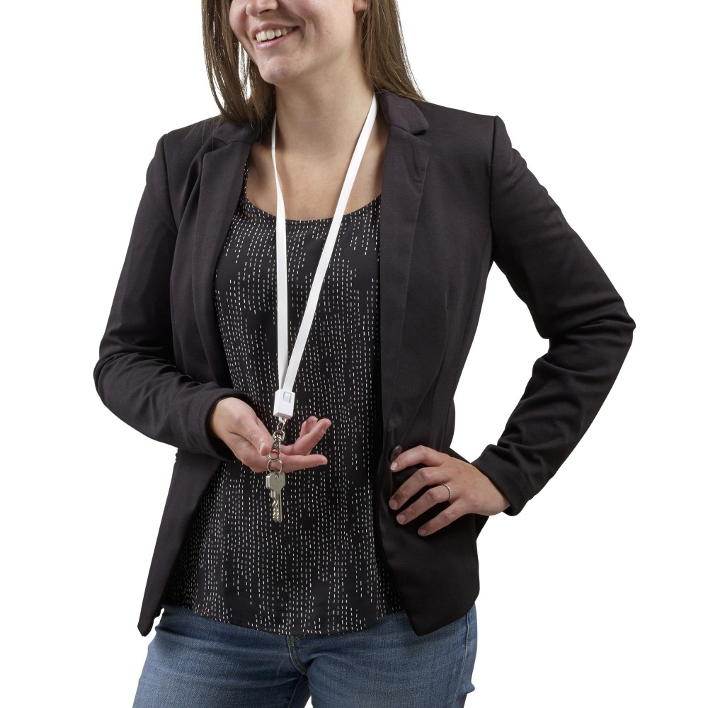 USB, micro USB és lightning töltőkábel és nyakpánt egyben. Hossza kb. 90 cm. Cseppkarabinerrel érkezik.