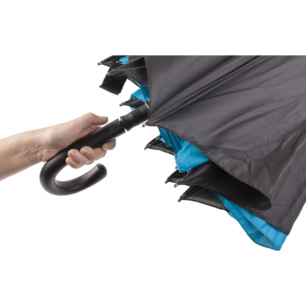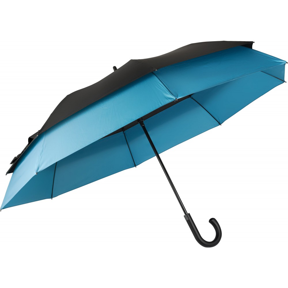 Automata esernyő nyolc panellel, szellőző kialakítással. Fém vázzal, üvegszálas bordázattal és gumis műanyag nyéllel. 190T., 190T, üvegszál, PVC, vas