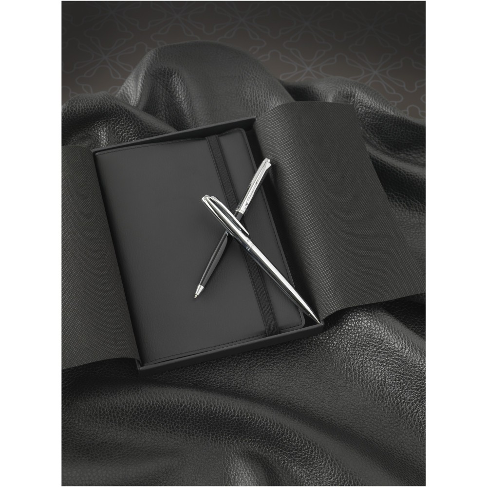 Kifinomult tervezésű golyóstoll krómozott vagy színes alsó résszel és fényes krómozott részletekkel. Prémium minőségű fekete tollbetéttel. Csomagolása Luxe ajándékdoboz.Fém.