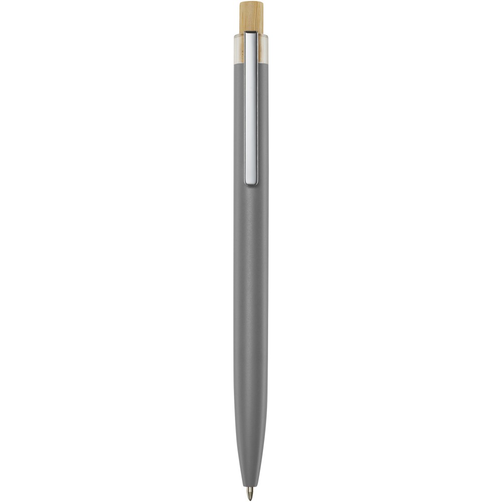 A Nooshin golyóstoll újrahasznosított alumíniumból készül, ami kevesebb energiát igényel, mint az alumínium nyersanyagból történő előállítása. Emellett csökkenti a hulladéklerakókba kerülő hulladék mennyiségét és hozzájárul a természeti erőforrások megőrzéséhez, amelynek célja az üvegházhatású gázok kibocsátásának csökkentése. A nyomógomb bambuszból készült. Tollbetét színe: kék. Íráshossz: 800 méter. Tollhegy mérete: 1,00 mm.