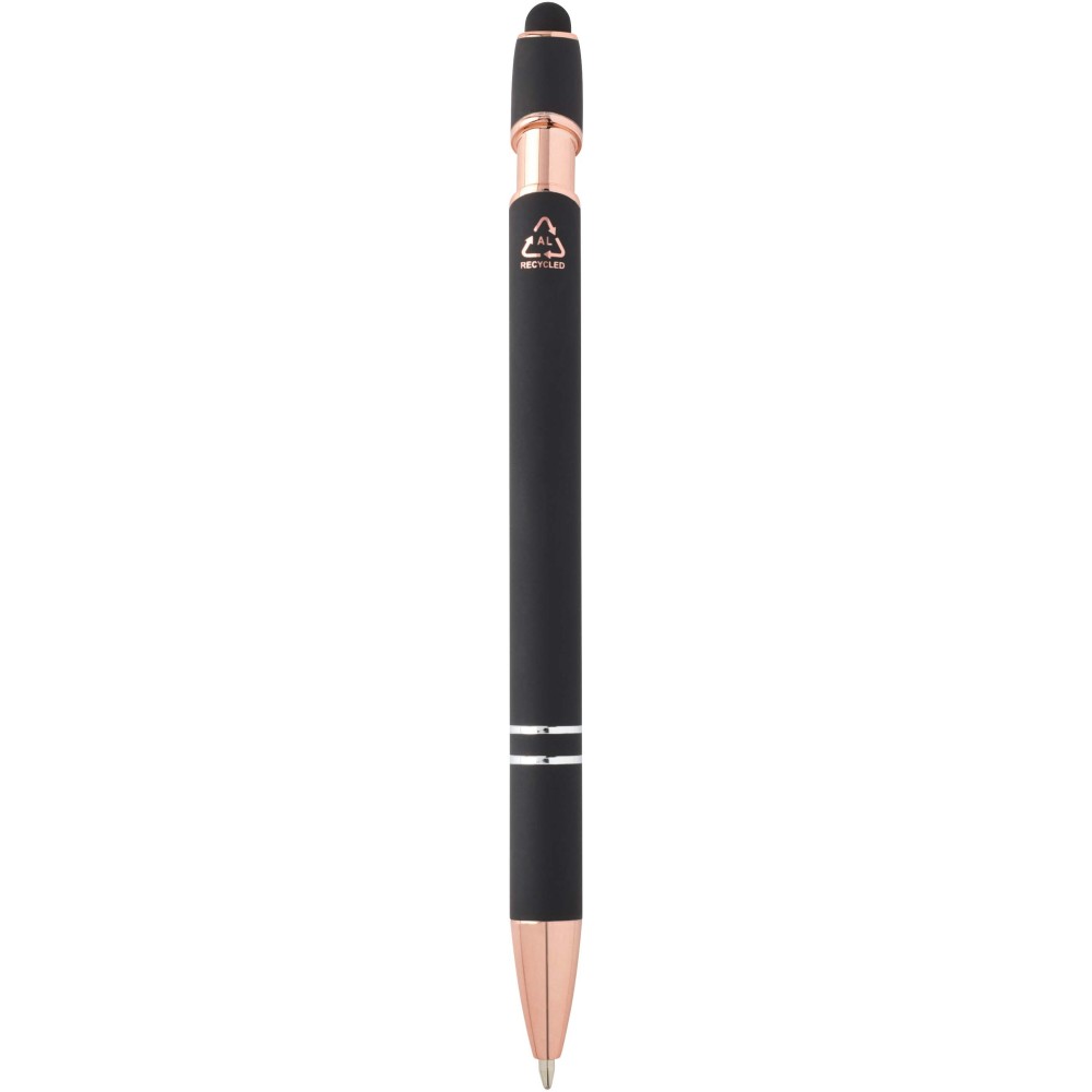 Nanna golyóstoll elegáns rózsaarany színben. A toll teste újrahasznosított alumíniumból, az érintőceruza pedig szilikonból készült, így érintőképernyős eszközökhöz is használható. Az újrahasznosított alumínium csökkenti a hulladéklerakók terhelését, segít megőrizni a természeti erőforrásokat, és célja az üvegházhatású gázok kibocsátásának mérséklése. Tinta színe: kék. Íráshossz: 800 méter. Tollhegy mérete: 1,0 mm.