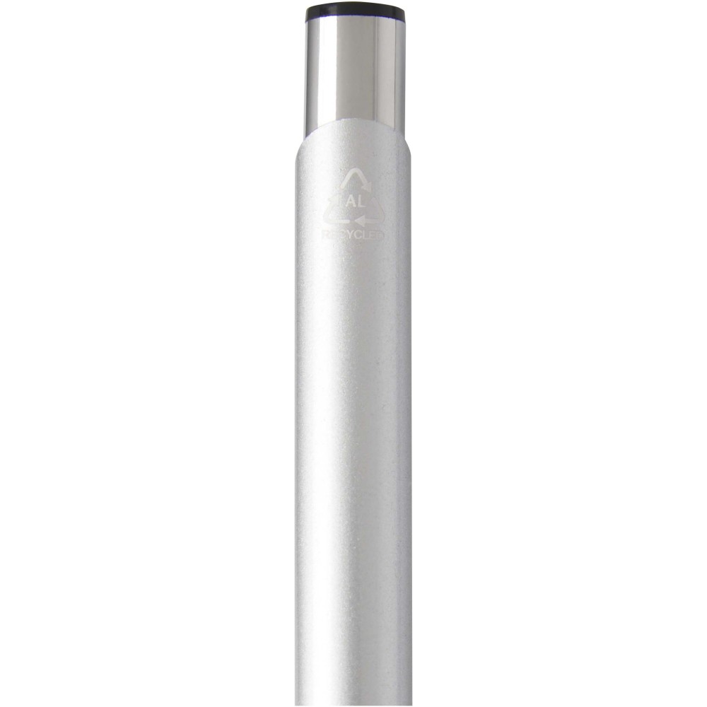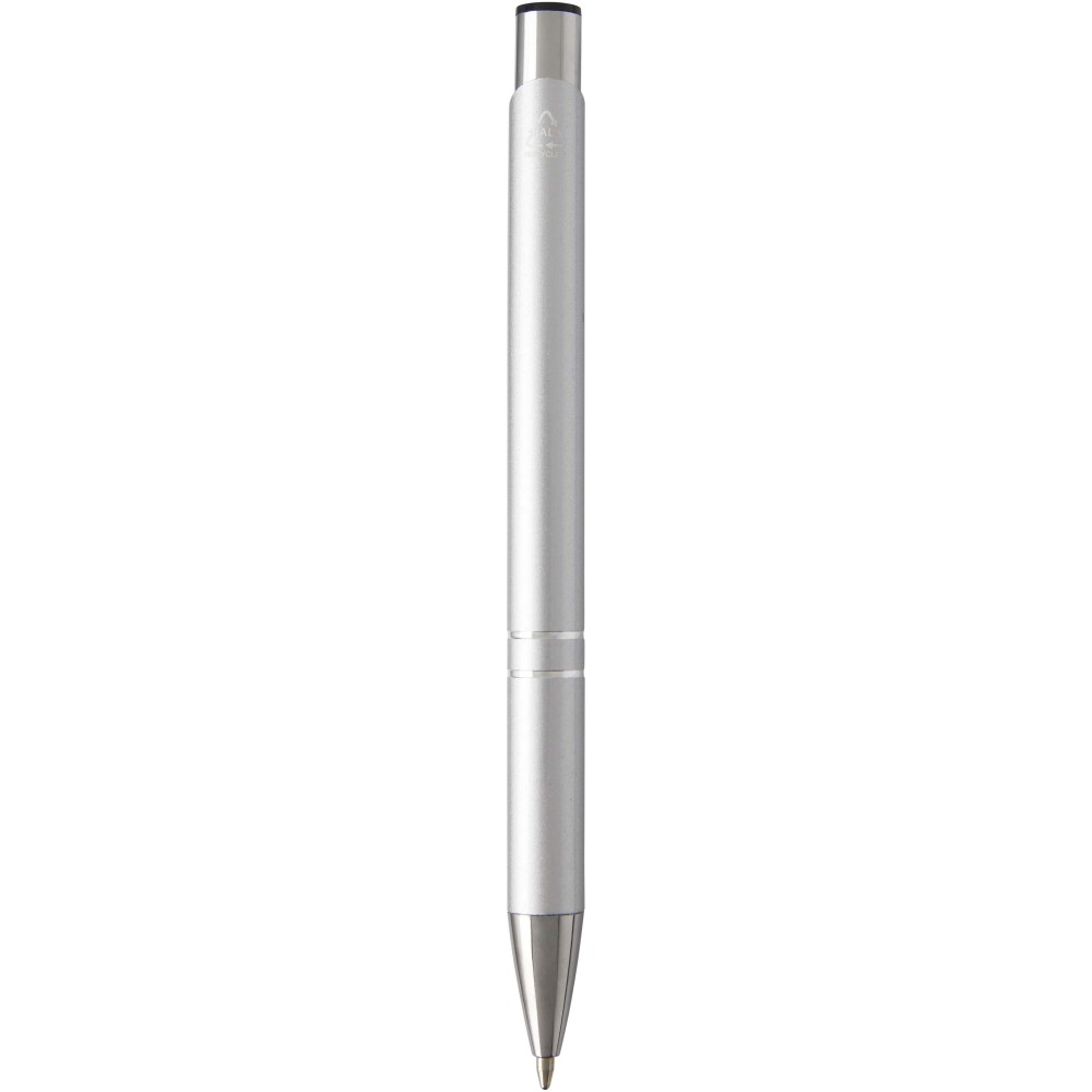 Golyóstoll újrahasznosított alumíniumból, lakkozott felülettel és króm részletekkel. Az újrahasznosított alumínium csökkenti a hulladéklerakók terhelését, segít megőrizni a természeti erőforrásokat és hozzájárul az üvegházhatású gázok kibocsátásának csökkentéséhez. Tinta színe: kék. Íráshossz: 1000 méter. Tollhegy mérete: 1,0 mm.