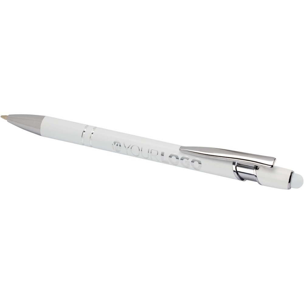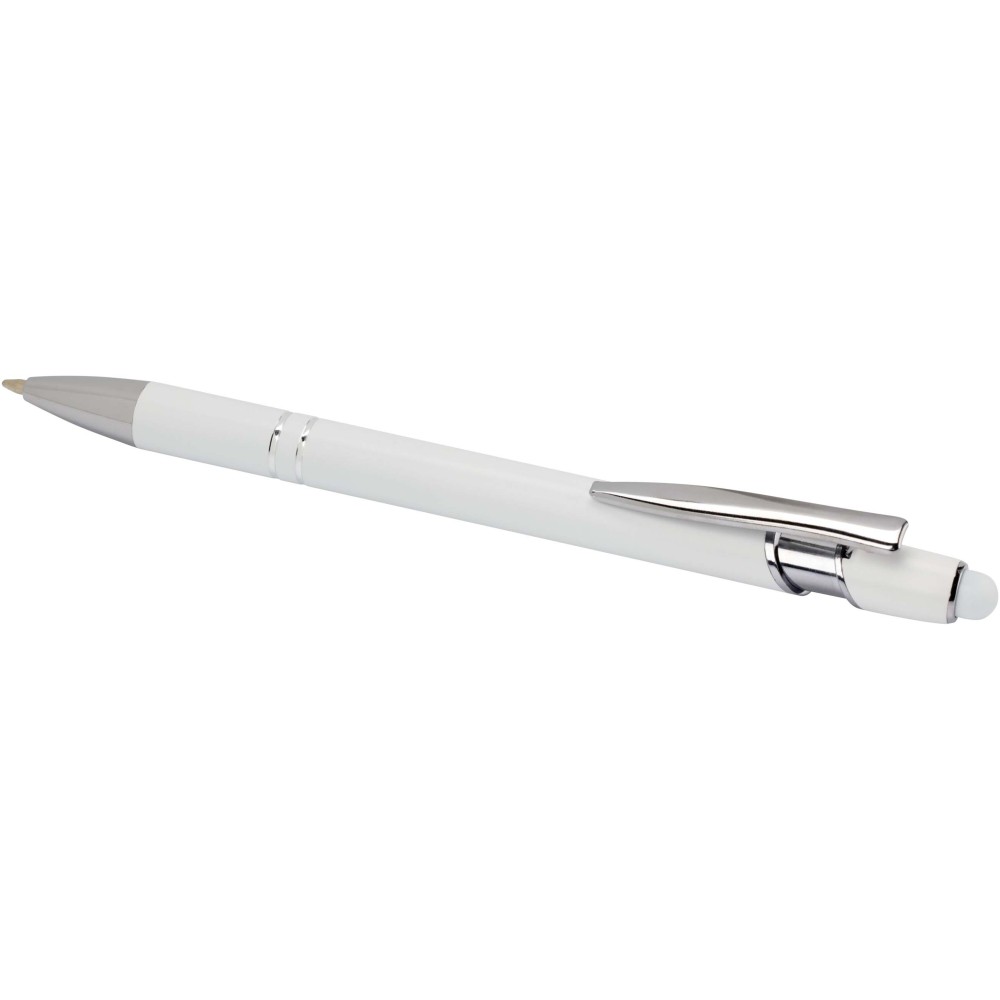A Kish golyóstoll ezüst bevonattal újrahasznosított alumíniumból készült tolltesttel és szilikon, érintőképernyős véggel rendelkezik. Az újrahasznosított alumínium csökkenti a hulladék mennyiségét a lerakókban, hozzájárul a természeti erőforrások megőrzéséhez és a károsanyag-kibocsátás mérsékléséhez. Tinta színe: fekete. Íráshossz: 800 méter. Tollhegy mérete: 1,0 mm.