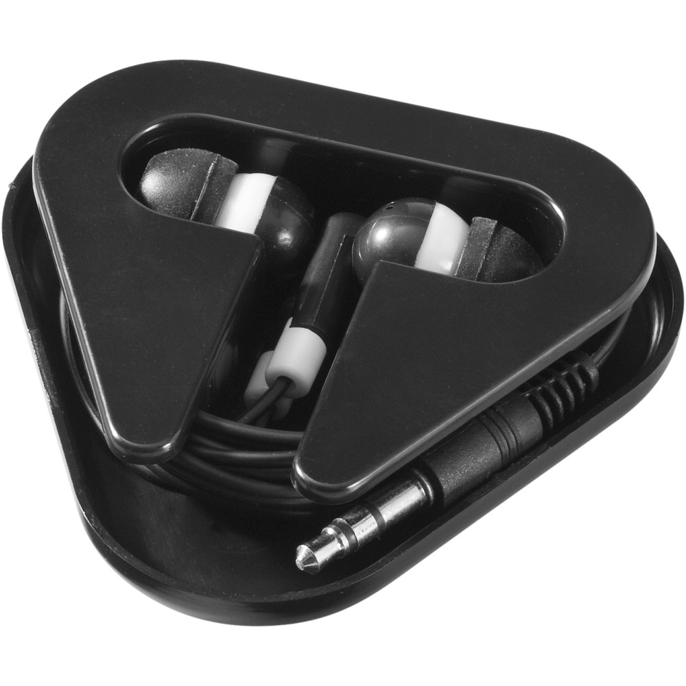 Háromszög alakú műanyag kábeltartó. Minden szabványos 3,5 mm-es audio csatlakozóval használható.