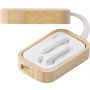 Fülhallgató vezeték nélküli technológiával, bambusz tokban. Töltőkábelt tartalmaz.