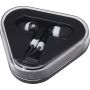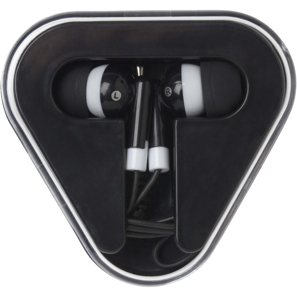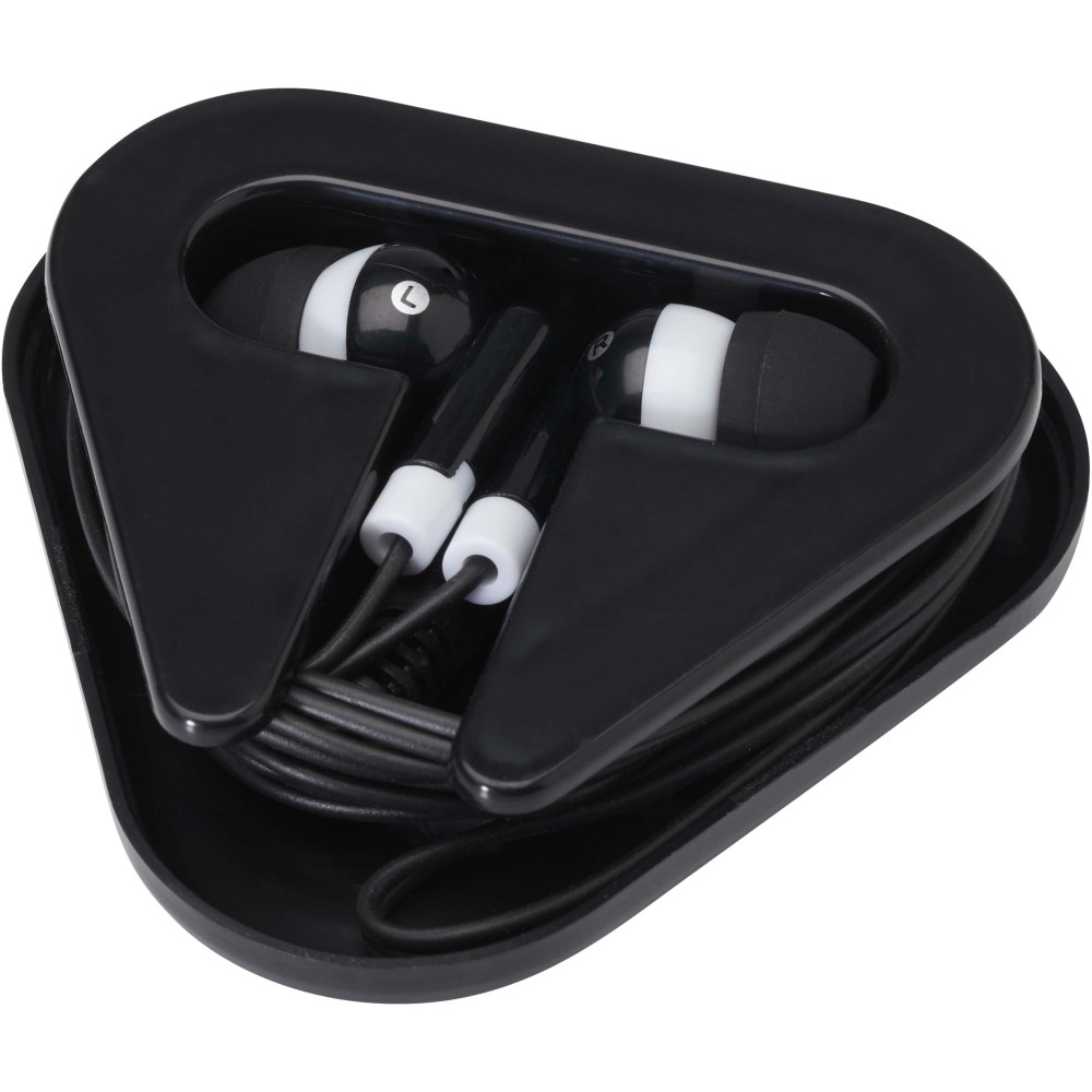 A Rebel fülhallgató egyszerű és praktikus megoldás, amely bármilyen 3,5 mm-es audio csatlakozóval rendelkező eszközzel használható. A fülhallgató újrahasznosított műanyagból készült, háromszög alakú kábeltartó tokban érkezik, amely megóvja a külső sérülésektől.