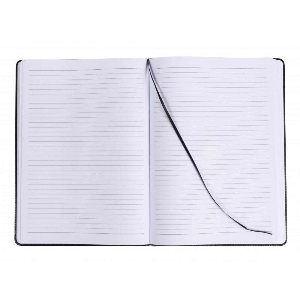A5-ös jegyzetfüzet könyvjelzővel, fekete