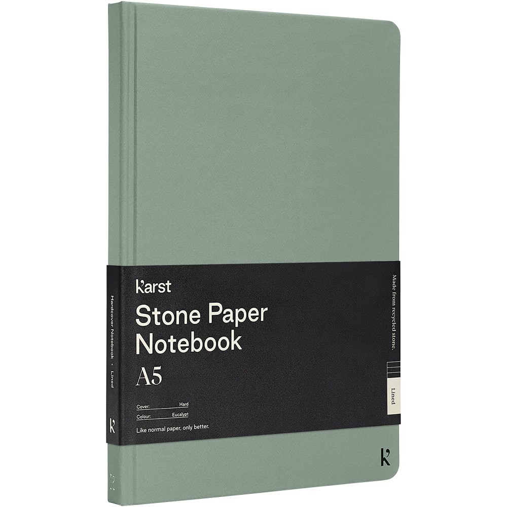 Karst A5 keményfedeles füzet. Az oldalak sima textúrája és a lapos kötészet bőséges kényelmet és íróteret biztosít jegyzetei számára. Elasztikus pánt, 144 vízálló, szakadásálló vonalas lap, kibővíthető hátsó zseb a tároláshoz, valamint könyvjelző és lekerekített sarkok.