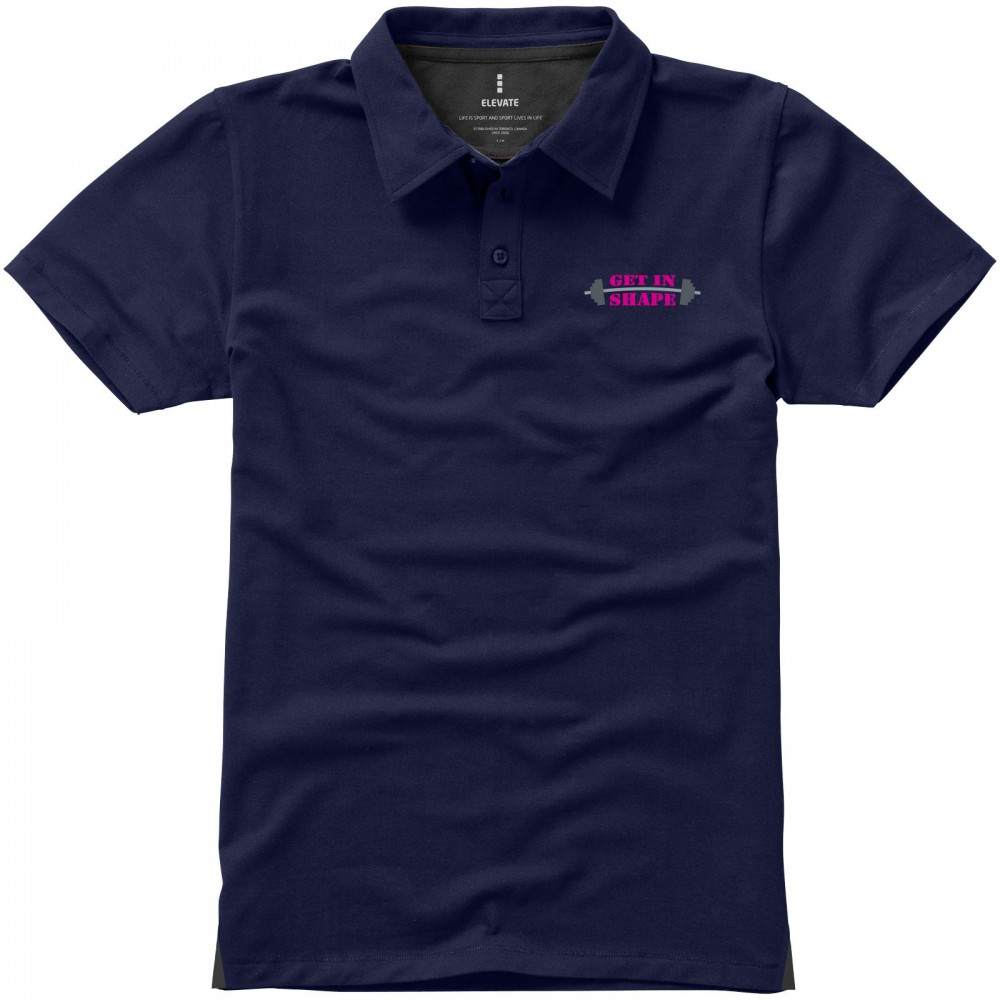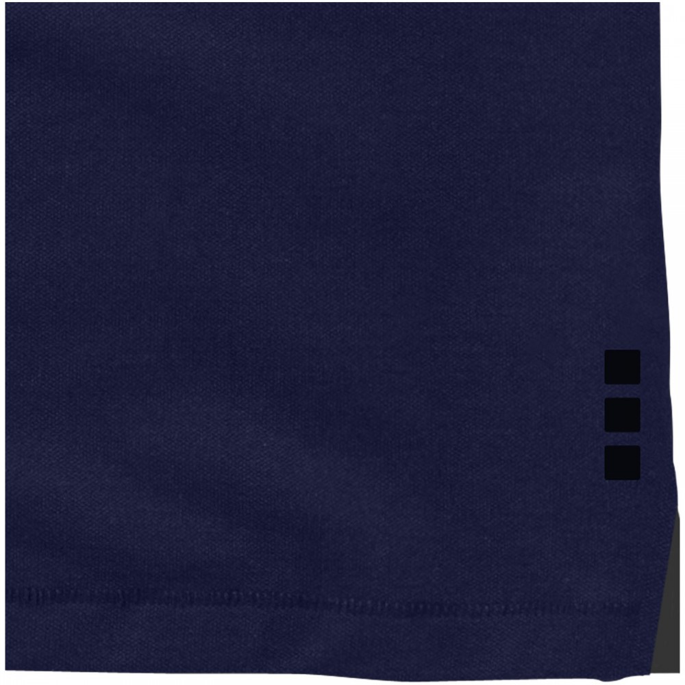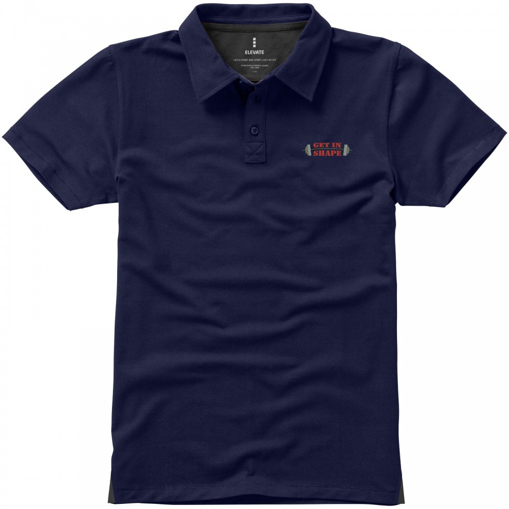 Normál szabásvonal. A férfi modell 3, a női 4 gravírozott, színben illeszkedő gombbal. Az oldalsliccben kontrasztos színű V-betét. Rejtett öltések. Tónusos logónyomat hátul. Kontrasztos színű félhold nyakbetét. Szatén szalagerősítés a nyakrészen. Saját anyagából készült gallér. Dupla piké, 95% pamut és 5% elasztán. 200g/m2.