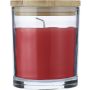 Üveg gyertyatartó 120 g vanília illatú, színes viasszal és bambusz fedéllel. Kb. 20 óra égési idővel. Csomagolása fehér papírhenger.