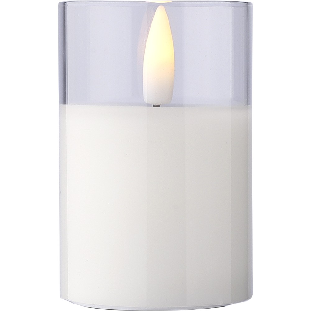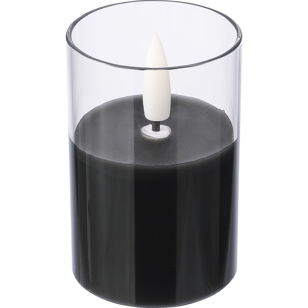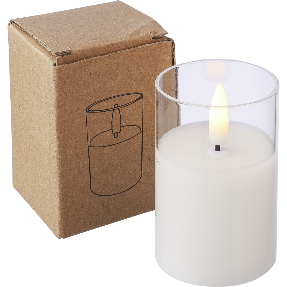 PP LED gyertya üvegtartóban, valósághű lánghatással. Elemmel együtt, körülbelül 100 órás égési idővel. Beltéri használatra tervezve. Egyenként csomagolva, barna kartondobozban.