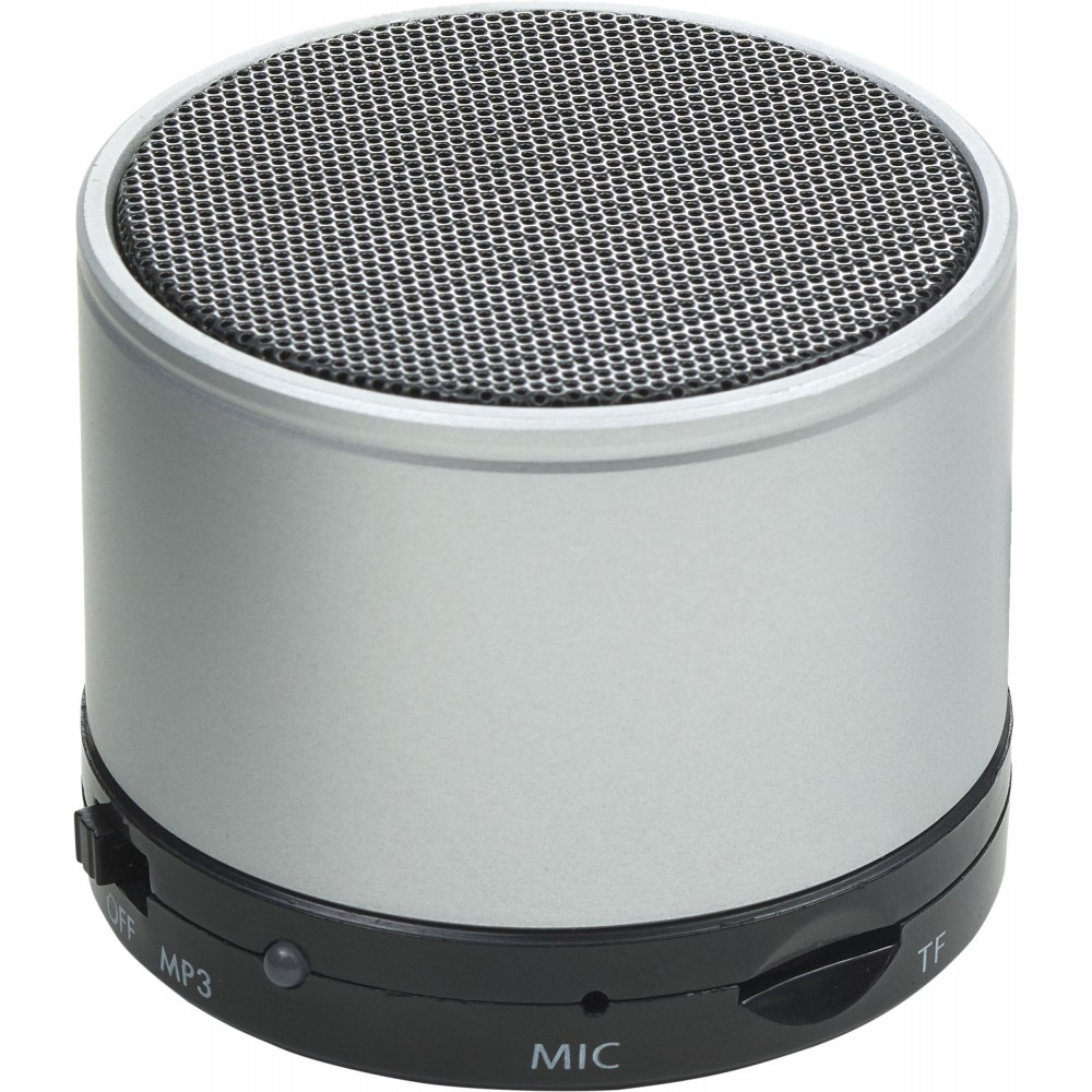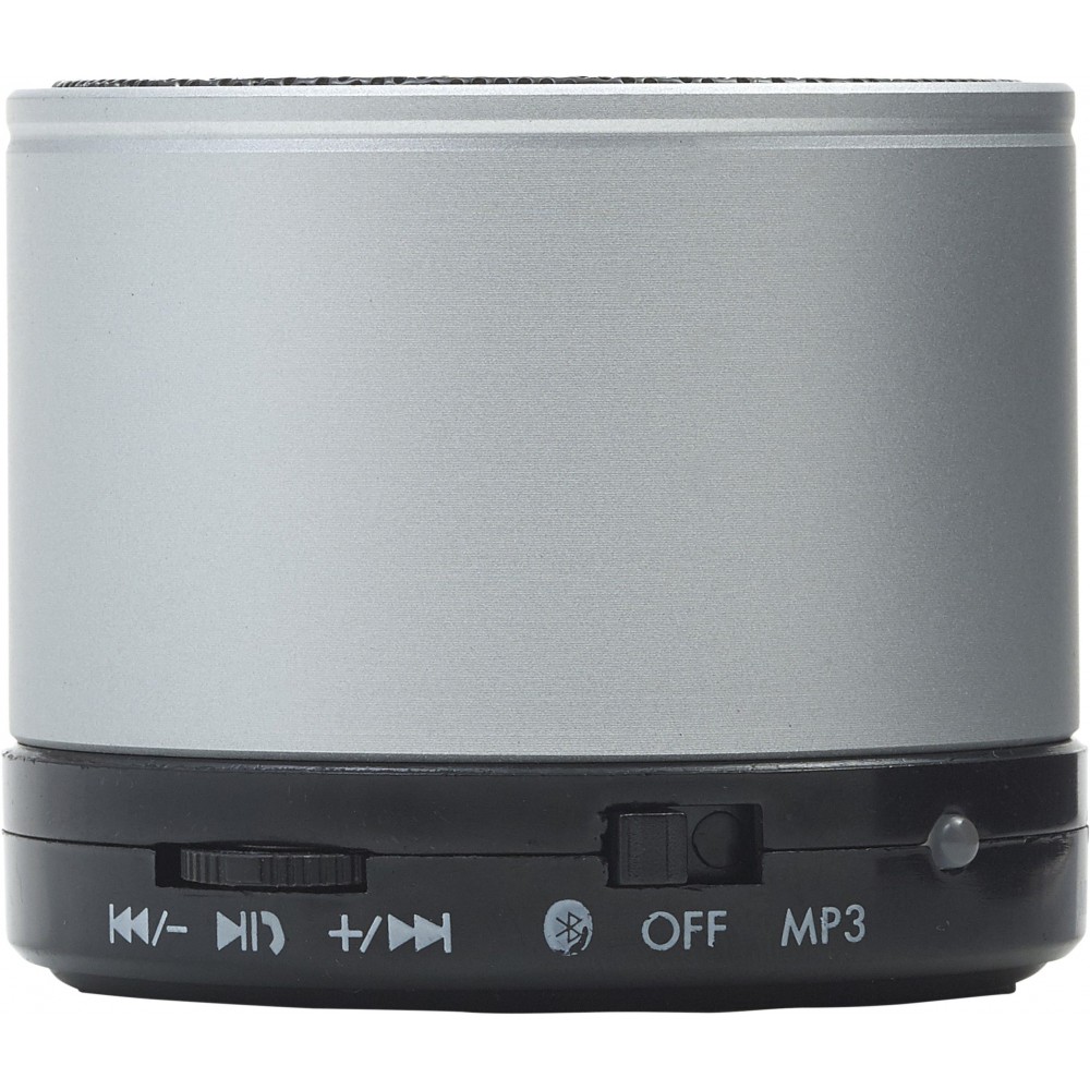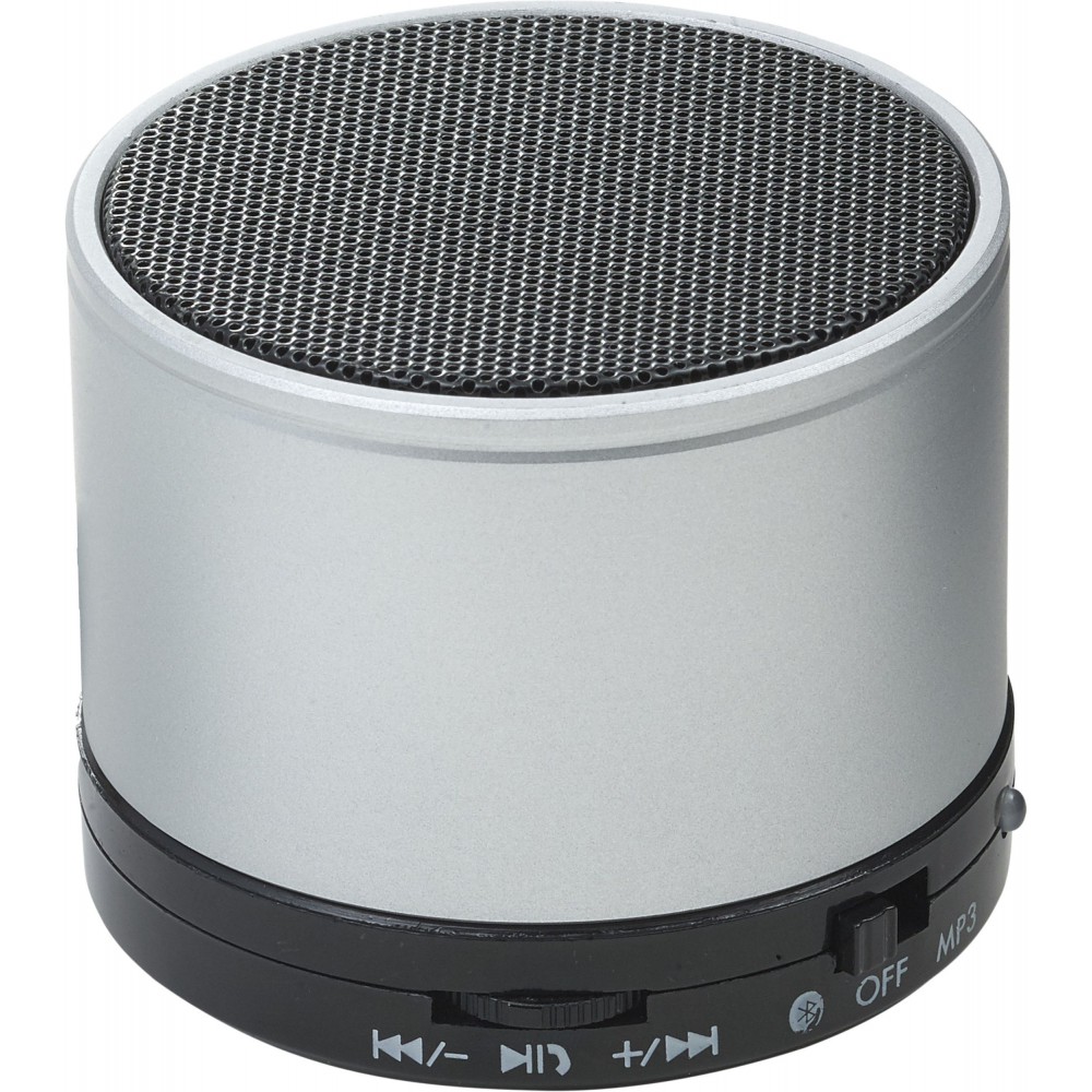 Vezeték nélküli hangszóró hangerő szabályozóval, előre- és visszaléptető gombbal, valamint módválasztó gombbal: MP3, vezeték nélküli mód és kikapcsolás. A töltőkábelt tartalmazza. Színezett fém anyag.