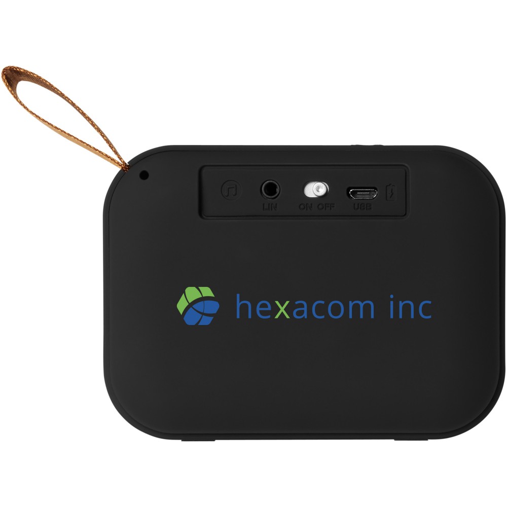 Textil bevonatú Bluetooth hangszóró megnyerő hanggal és stílussal. 3 Watt. A 400 mAh-ás akkumulátor 2 órás játszási időt tesz lehetővé. A Bluetooth hatótávolsága 10 méter (33ft). Bluetooth verzió 5.0. ABS műanyag.