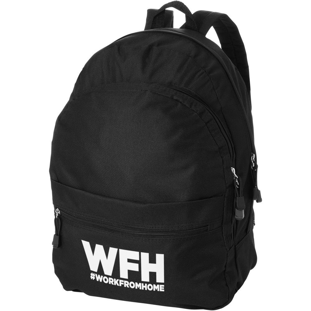 A kényelmes Trend hátizsák nyerő a promóciós hátizsákok között. A divatos kialakítású táska négy rekesszel rendelkezik: két cipzáras rekesszel, egy elülső cipzáras zsebbel és egy tépőzáras elülső zsebbel, így bőséges helyet kínál nagy és kis tárgyak tárolására egyaránt. A termék 600D poliészterből készült.