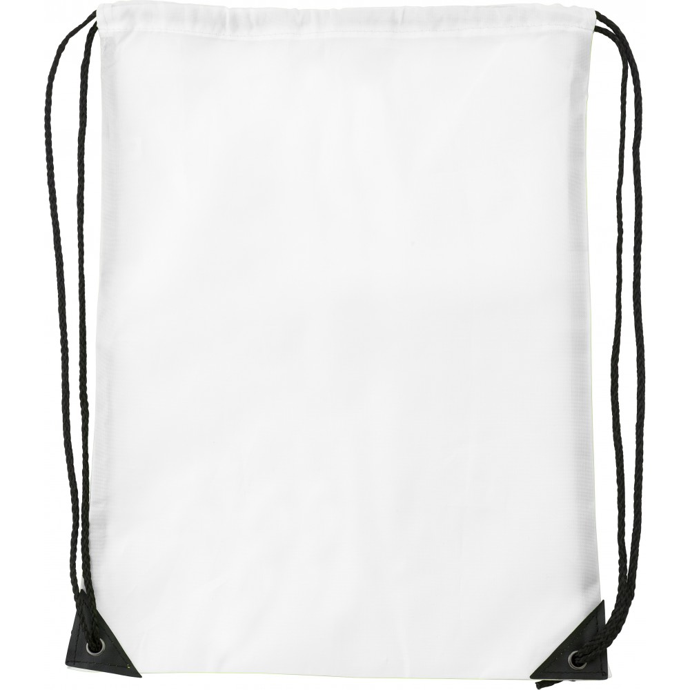 Tornazsák erősített sarkokkal és nylon húzózsinórral. 210D poliészter.