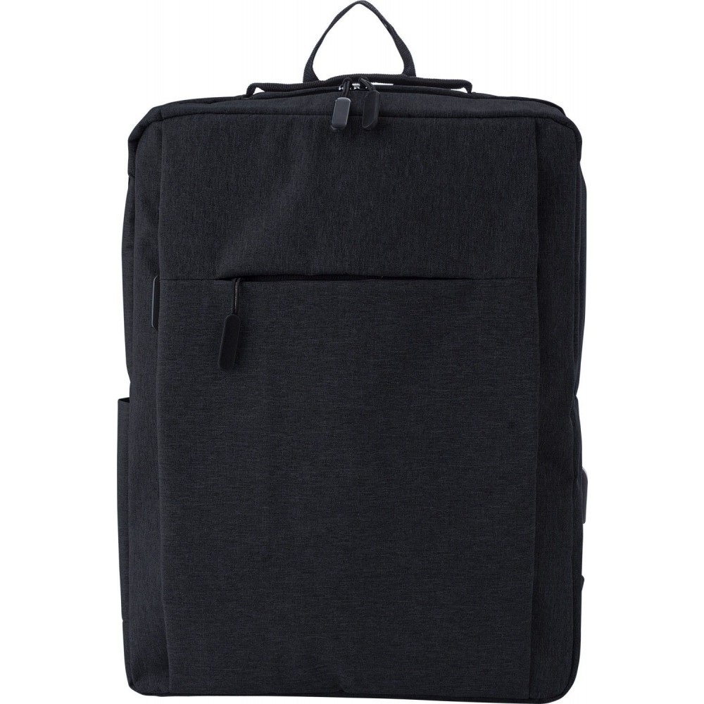 Hátizsák egy cipzáras fő rekesszel és első zsebbel. Oldalt USB kimenet. Állítható, párnázott vállpántok. 600D poliészter.