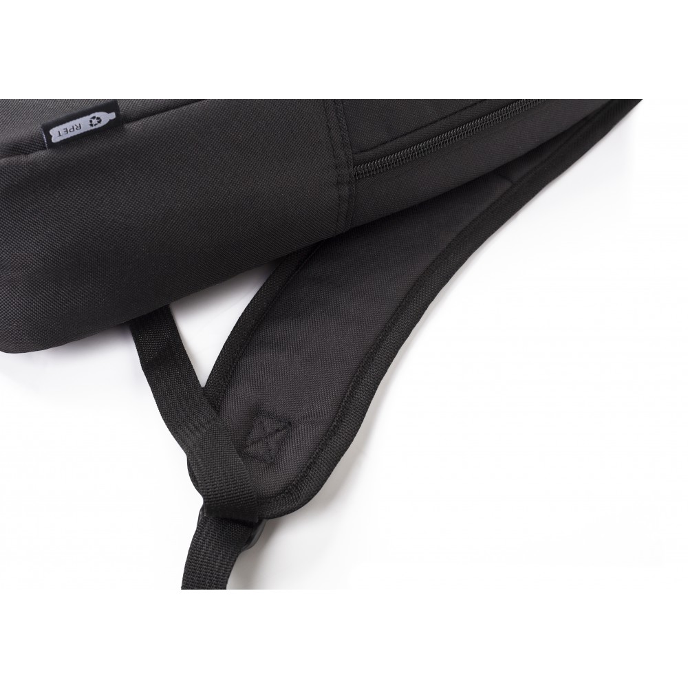 Basic laptop hátizsák 15"-es laptop számára. Egy nagy rekesz laptoptartóval. Az elején egy kis cipzáras zseb. 600D RPET poliészter.