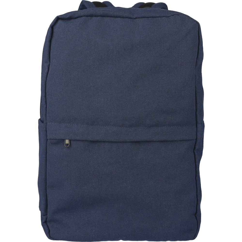 Hátizsák 330 g/m2 újahasznosított policotton anyagból, 210D poliészter béléssel. Egy nagy cipzáras rekesszel, párnázott 15"-es laptoptartó résszel, két belső és két külső rekesszel, oldalzsebbel és egy kicsi, cipzáras elsőzsebbel. Párnázott, állítható vállpánttal és hordozófüllel. Űrtartalom: 14 liter, teherbíró képesség: 13 kg. Címkét tartalmaz.