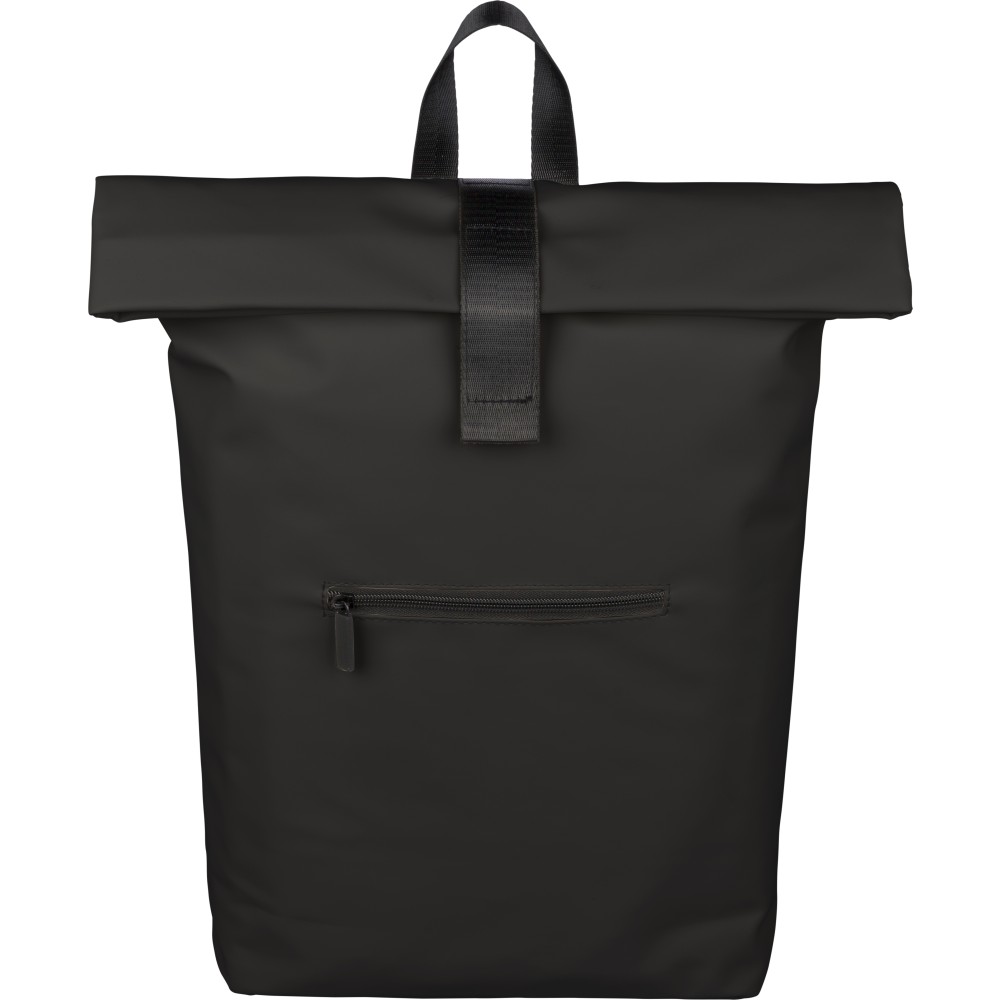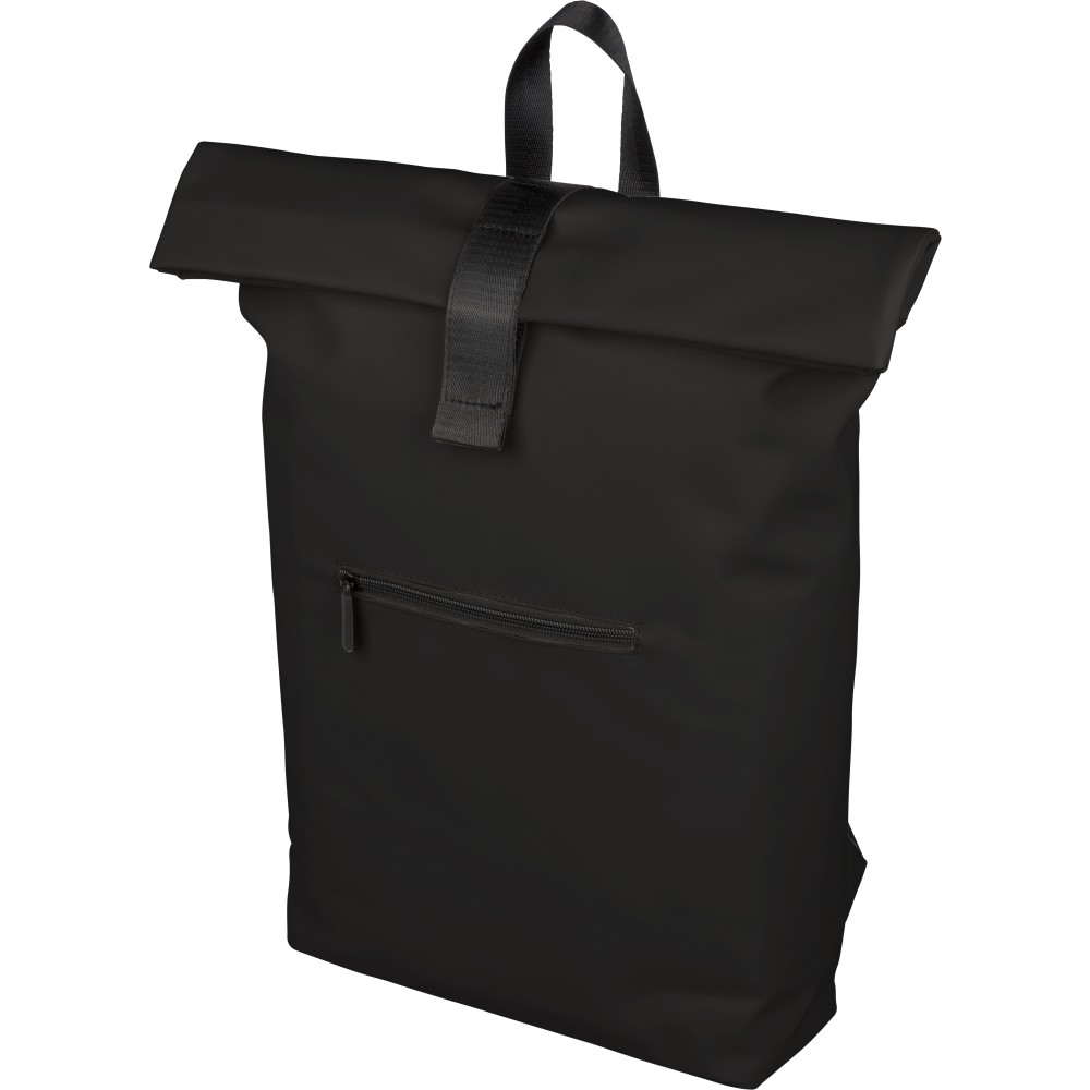 Újrahasznosított PU anyagból készült hátizsák 19 literes űrtartalommal, rolltop záródással és tépőzáras rögzítéssel. Elülső cipzáras zsebbel, 16 hüvelykes laptoprekesszel, 210D újrahasznosított béléssel, állítható szellőző vállpántokkal és felső fogantyúval rendelkezik. A belső címkén újrahasznosított alapanyagra utaló jelölés található.