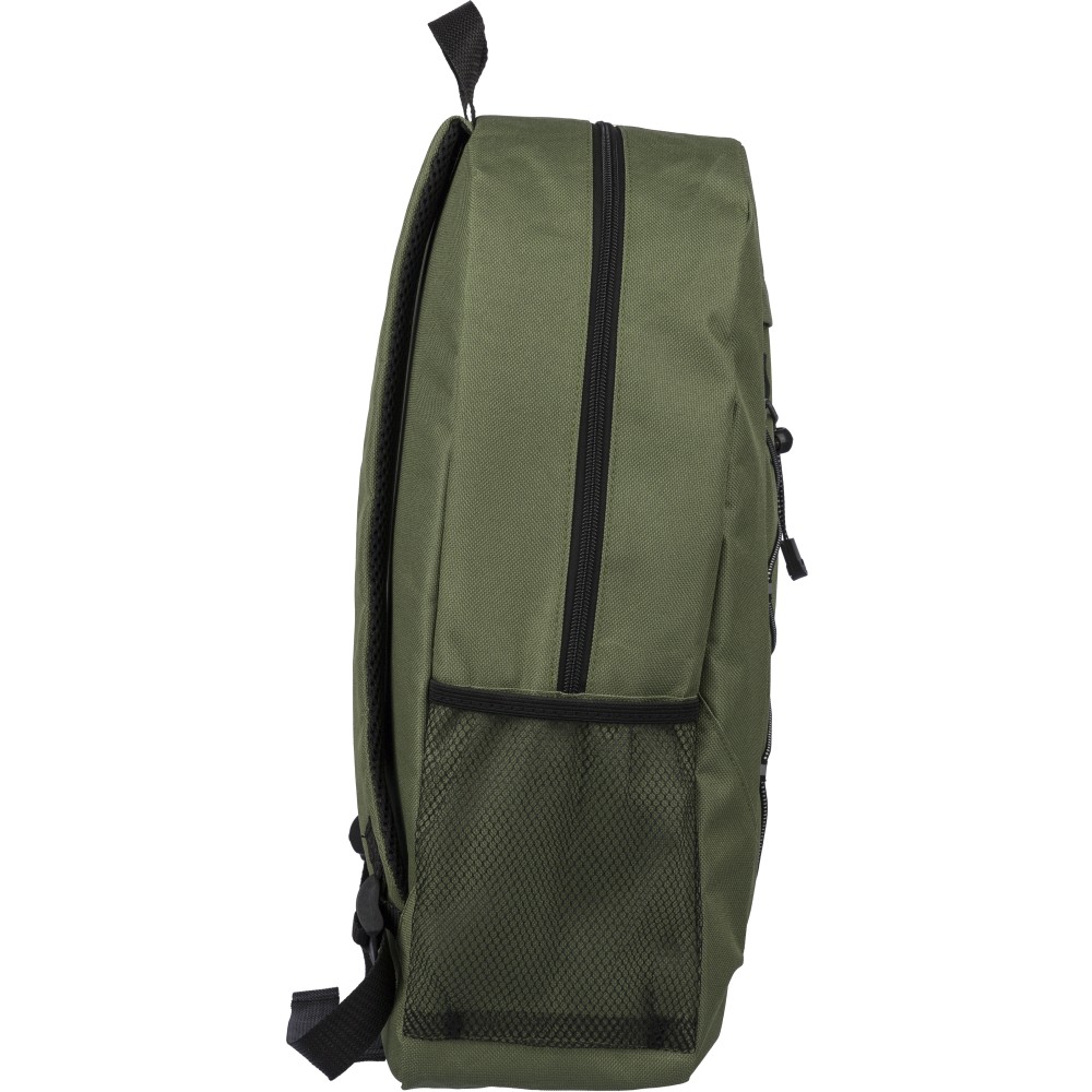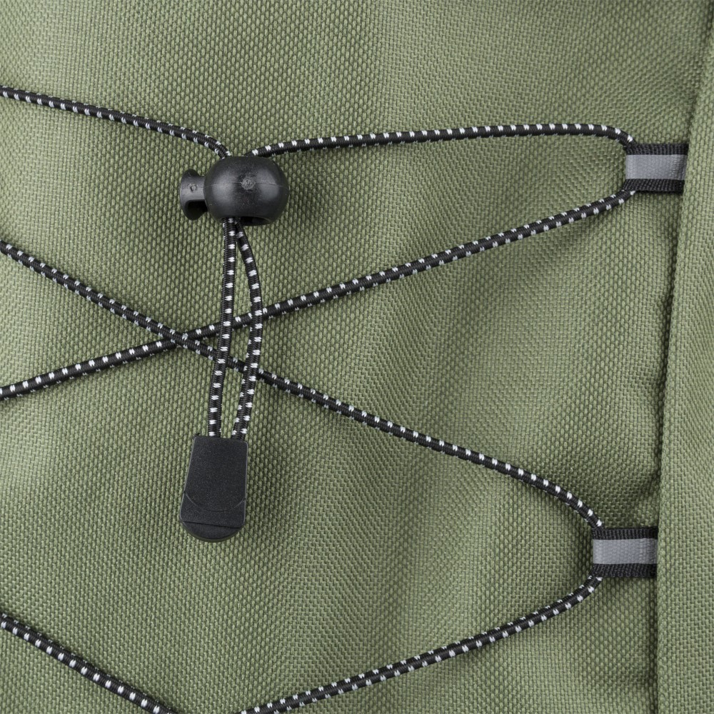 RPET poliészter 600D anyagból készült hátizsák húzózsinóros záródással és nagy cipzáras fő rekesszel. Hálós oldalzsebekkel, rugalmas elülső pántokkal, dekorációhoz kialakított kis elülső cipzáras zsebbel és állítható vállpántokkal rendelkezik. A terméken rPET alapanyagra utaló címke található.