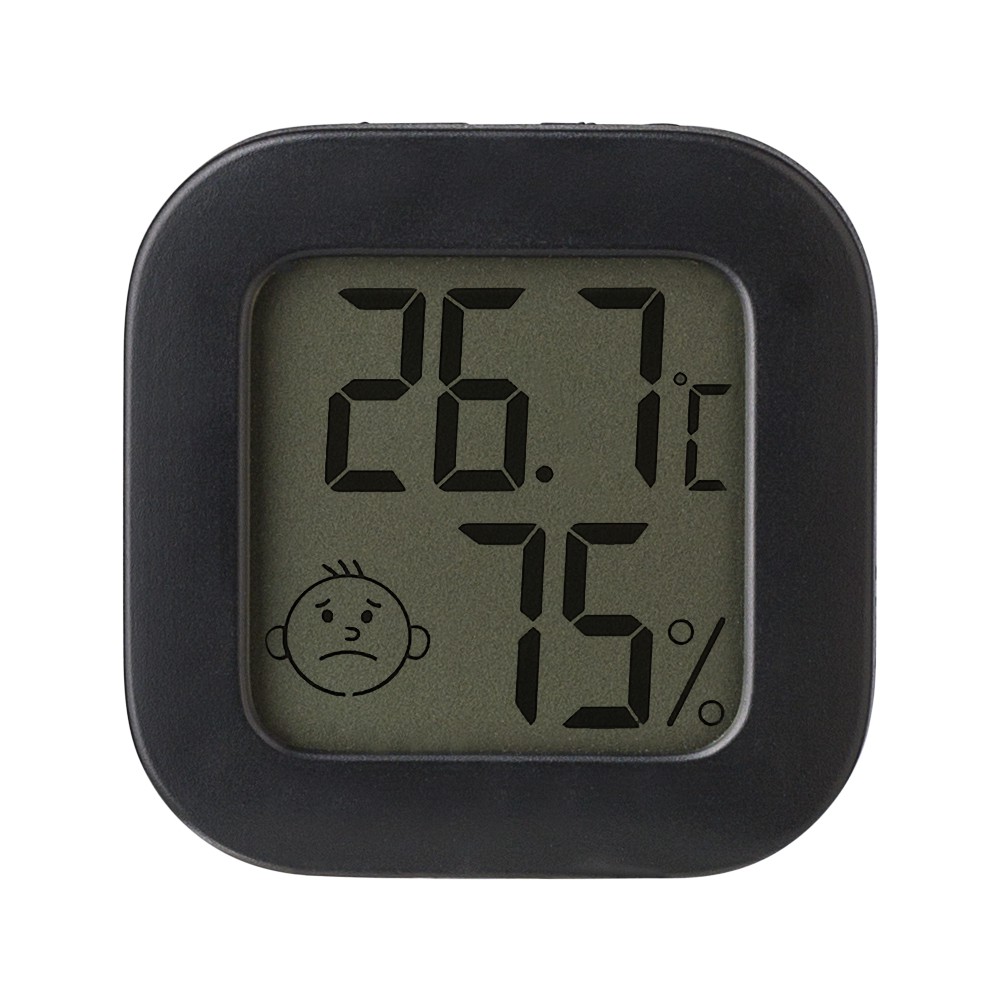 Kis higrométer (kb. 4 cm), amely az aktuális hőmérsékletet és páratartalmat mutatja. Kitámasztható. Az elemeket tatalmazza. Darabonként fehér dobozba csomagolva árkezik. ABS műanyag.