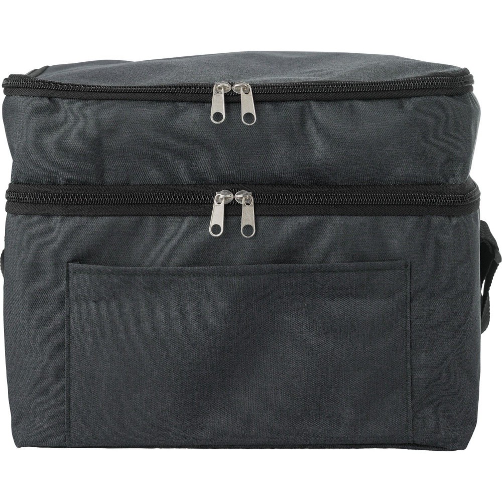 RPET hűtőtáska belül alumínium fólia szigeteléssel, két cipzáros rekesszel és első zsebbel, vállpánttal.