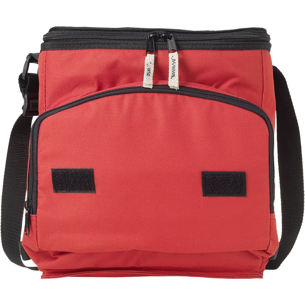 Összehajtható hűtőtáska cipzáras fő rekesszel és cipzáras elülső zsebbel. Állítható vállpánt. A hűtőtáska laposra hajtható az elülső zseben található horog és hurok segítségével. Egyéb kiegészítőt nem tartalmaz.