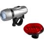 Biciklis lámpaszett. Első lámpa 5 LED fénnyel, 3 villogómóddal. Hátsó lámpa 4 LED fénnyel, 7 villogómóddal. Az elemet tartalmazza.