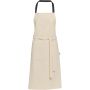A Nia kötény 100% GRS tanúsítvánnyal rendelkező, 200 g/m2 újrahasznosított pamutból készült. Természetes pamut színe és kontrasztos nyakkpántja elegánsan védi ruhádat főzés közben. Két egymás melletti zsebbel rendelkezik, összesen 45 x 20 cm-es mérettel, és 1 méter hosszú pánttal rögzíthető hátul.