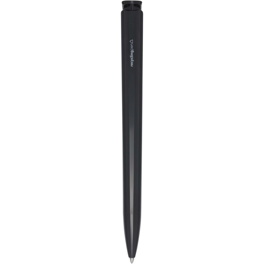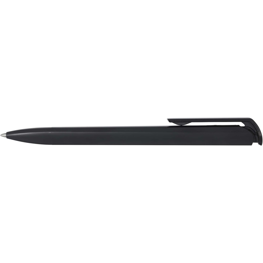Golyóstoll, amelynek teste és klipsze újrahasznosított műanyagból készült, a hegy pedig rozsdamentes acélból. Fekete tollbetéttel. Íráshossz: 3000 méter. Hegyméret: 1,00 mm. Németországban készült.
