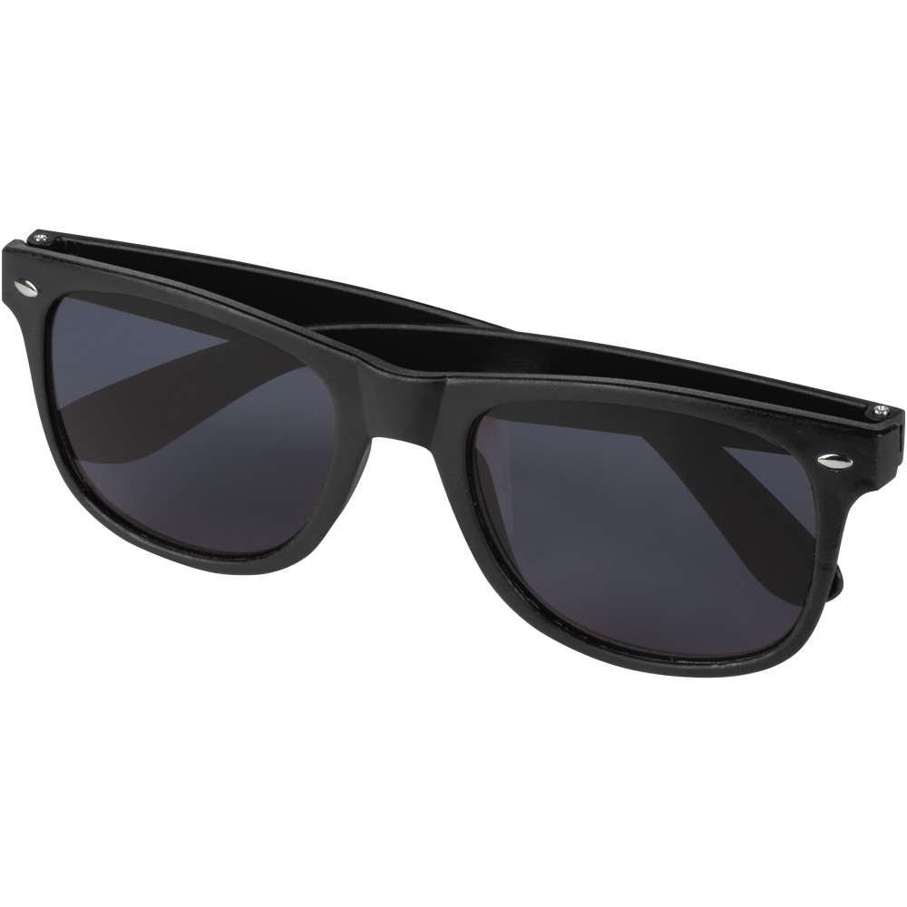Ez a fenntartható, retro dizájnú napszemüveg ideális promóciós ajándék nyári fesztiválokon, rendezvényeken vagy más napsütéses szabadtéri tevékenységek során. A napszemüveg könnyű és kényelmes viselet, és újrahasznosított műanyagból készült a fenntarthatóság érdekében. Megfelel az EN ISO 12312-1 szabványnak, és UV400-as lencsékkel rendelkezik, amelyek besorolása a 3. kategóriába tartozik, így tökéletes választás az erős napfény elleni védelemhez.