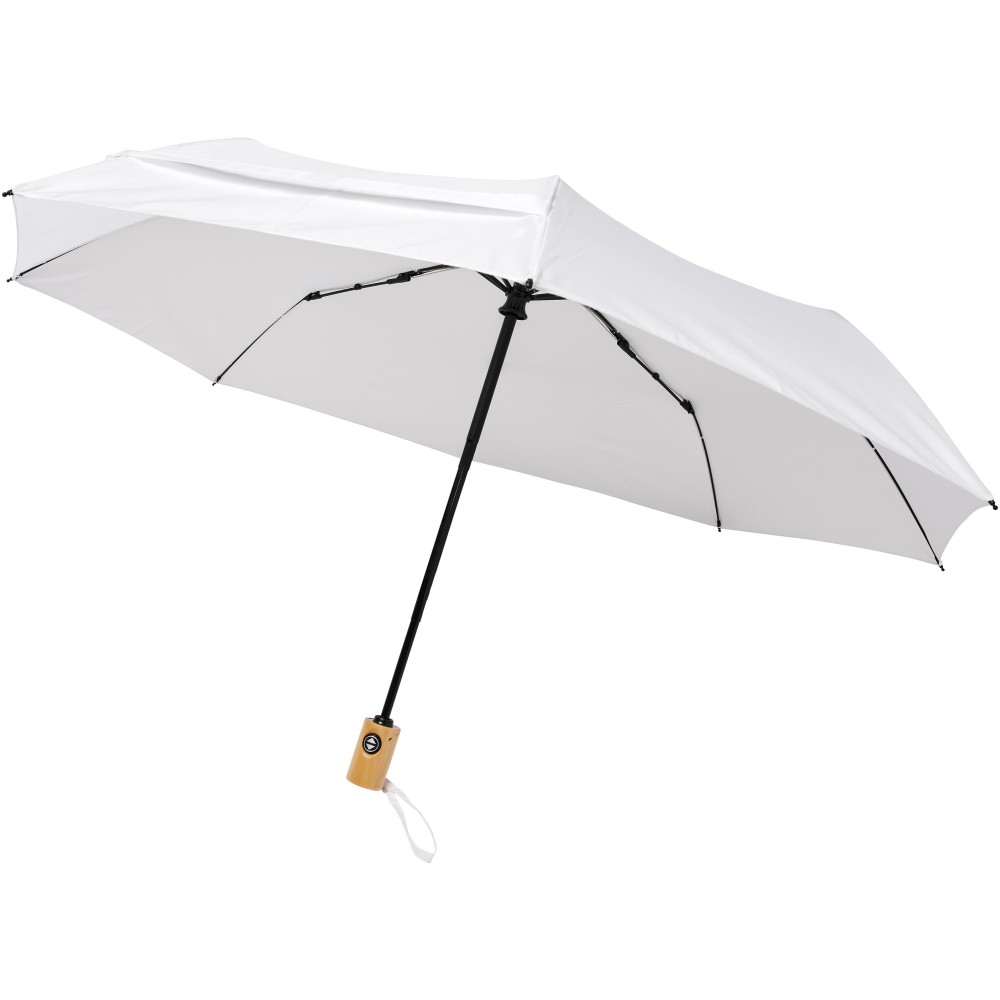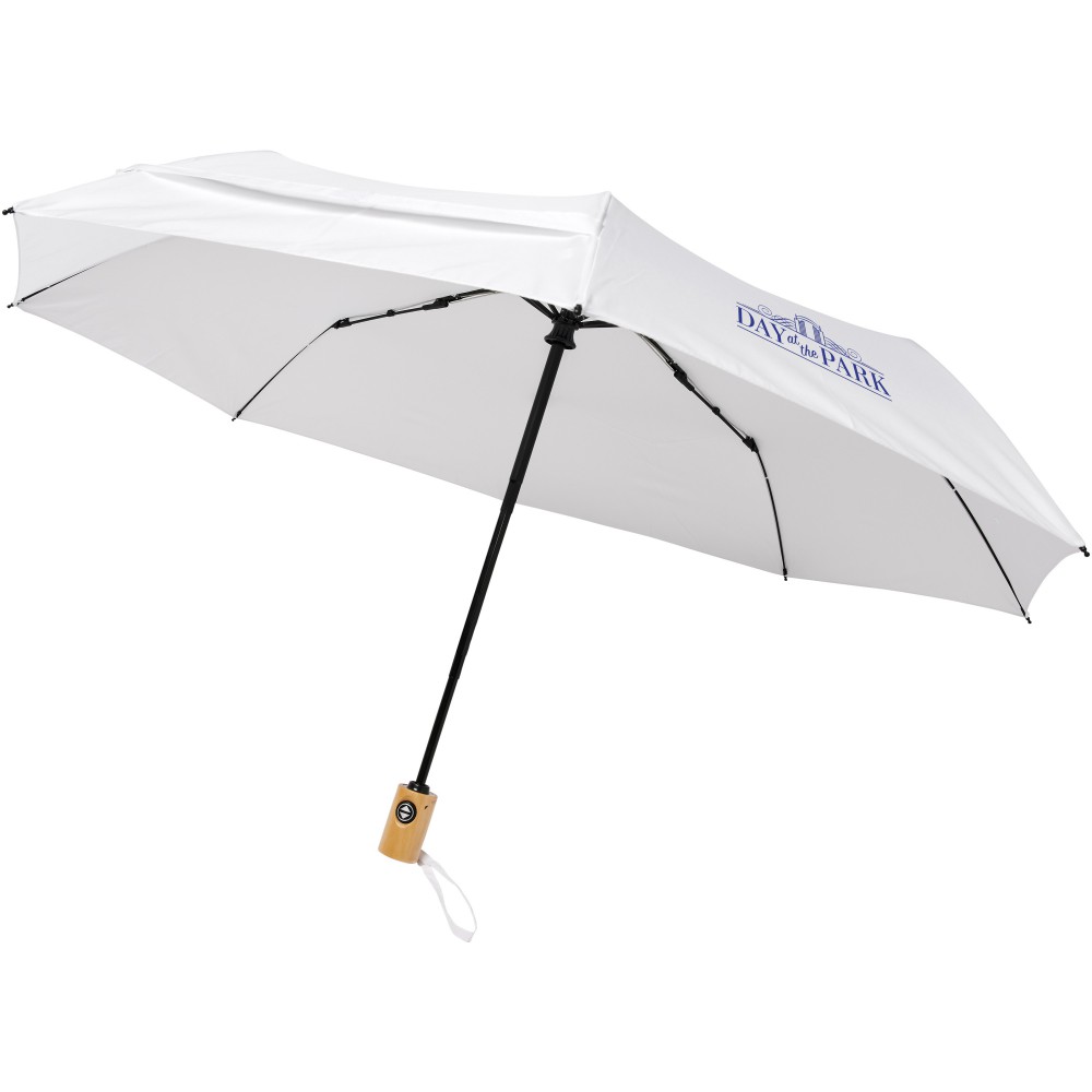 Összecsukható 21 -es esernyő. Erős fém váz, üvegszálas szerkezet. Fa nyele és az újrahasznosított RPET alapanyag miatt jó választás azok számára, akiknek fontos a fenntartható szemlélet.