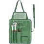 Barbecue kötény. A zsebek tartalma: hússütő villa, kés, fogó, lapát, só- és borsszóró, edényfogó kesztyű.