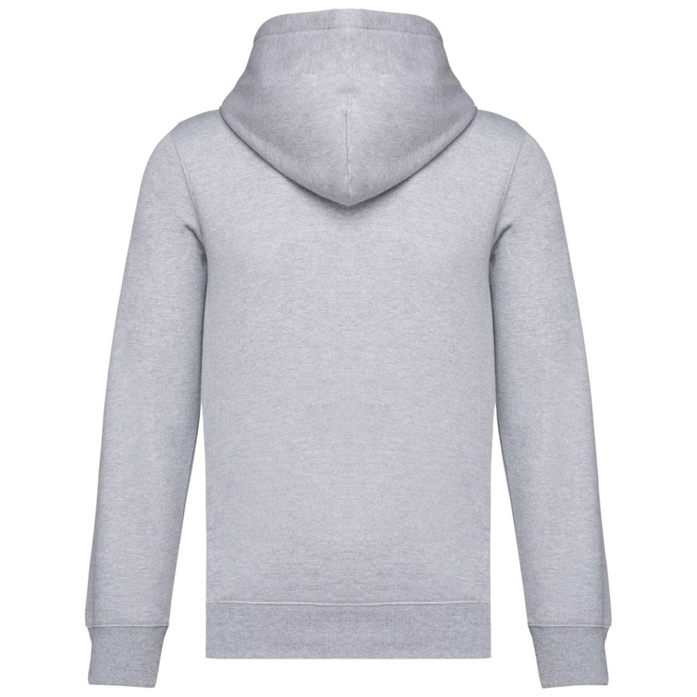 50% gyűrűs fonású pamut / 50% újrahasznosított poliészter, fésült pamut. Egyenes szabású, vágott és varrott. 1x1 bordás kötés a nyakkivágás, a mandzsetta és az alsó szegély jobb megjelenése érdekében. Kenguruzseb, nylon cipzár. Policotton dzsörzé bélésű kapucni lapos húzózsinórral. Színben illeszkedő dzsörzé szalagos belső a nyakkivágásnál. Csak méretcímke márkajelzés nélkül.