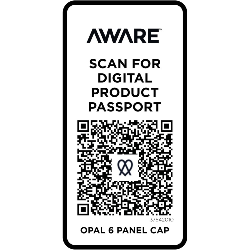 Az Opal 6 paneles sapka 70%-ban újrahasznosított pamutból és 30%-ban újrahasznosított poliészterből készült. Úgy tervezték, hogy 58 cm-es fejkörfogatnál kényelmesen illeszkedjen, a fémcsatos záródás pedig könnyű és biztonságos beállítást tesz lehetővé. A sapka Cyclo újrahasznosított szálakat tartalmaz, ahol előválogatott hulladékot használnak, amely meghatározza a fonal színét. Ezek a szálak nem csak a szűz erőforrások iránti igényt csökkentik, hanem a körkörös élet iránti elkötelezettséget is mutatják, megtestesítve a hulladékcsökkentés lényegét. Minden sapkához egy Aware nyomjelző is tartozik. Ez az innovatív funkció lehetővé teszi a felhasználók számára, hogy egy QR-kód segítségével nyomon követhessék a termék eredetét és útját, növelve az ellátási lánc átláthatóságát, és elősegítve a termék és a gyártási folyamat közötti szorosabb kapcsolatot.
