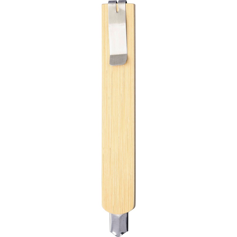 Sniccer bambusz testtel. A hátoldalán fém klip található, amellyel a vágóél rögzíthető, amikor nincs használatban. A pengék szénacélból készültek. Egyenként újrahasznosított műanyag tasakba csomagolva. Anyaga: fém és bambusz.