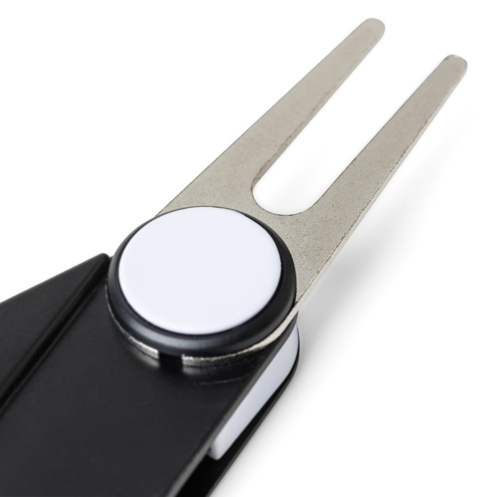 Újrahasznosított ABS anyagból készült multifunkciós golfeszköz beépített jelölővel, pitch forkkal, tisztítókefével és pontszámlálóval. A hátoldalon recycled (újrahasznosított) alapanyagra utaló logó található. Újrahasznosított polietilén tasakba csomagolva.