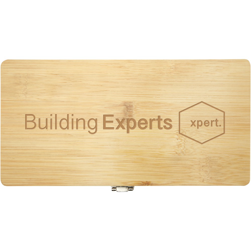 Tapasztald meg a fenntarthatóság és a funkcionalitás tökéletes keverékét a Rivet szerszámkészlettel. Ez az aprólékosan megtervezett eszköztár nem csak látványos, hanem környezettudatos is, anélkül, hogy a minőségben vagy a teljesítményben kompromisszumot kötne. A bambusz természetes ereje és tartóssága biztosítja, hogy szerszámaid hosszú éveken át védve legyenek. A tok belsejében 19 alapvető, szénacélból és újrahasznosított műanyagból készült szerszám található: 1 csavarhúzó, 4 kiváló minőségű végfej különböző felhasználásra, 1 hosszabbító a nehezen elérhető helyekhez, 10 precíziós bitfej bármilyen feladathoz és 3 imbuszkulcs bútorok összeszereléséhez. Legyen szó barkácsolásrajongóról vagy professzionális kereskedőről, ezeket az eszközöket úgy tervezték, hogy megbízhatóan működjenek és ellenálljanak a szigorú használatnak. Mivel a bambusz természetes alapanyag, darabonként előfordulhatnak kis szín- és méretbeli eltérések, ami befolyásolhatja a végső emblémázási eredményt. Fenntartható