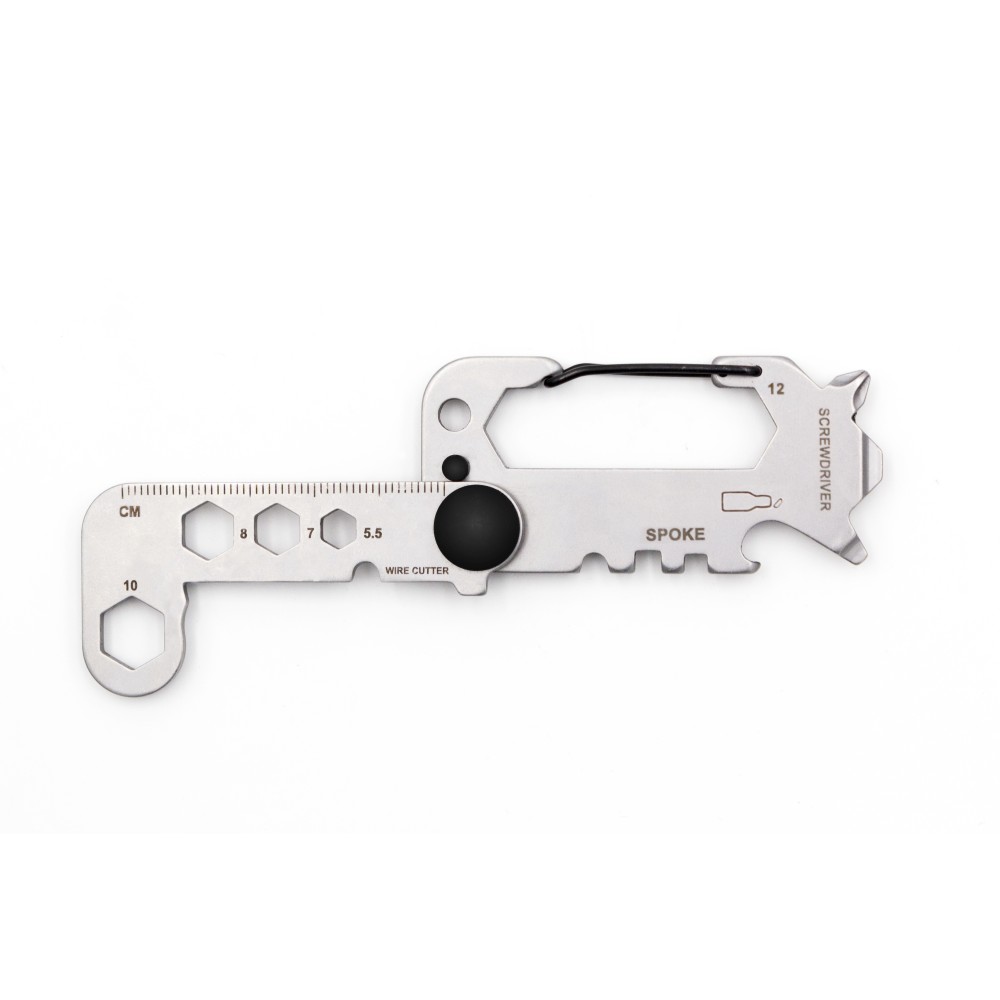 Az edzett 420-as martenzites rozsdamentes acélból készült Twist többfunkciós szerszám a bicklisták kedvence lesz. 8 alapvető szerszámot egyesít egy kompakt csavaros kialakításban, amely kényelmesen illeszkedik a kezedbe. Ez a sokoldalú eszköz tartalmaz egy drótvágót, kerékpárküllős csavarkulcsot, több villáskulcsot (5,5-12 mm), kulcstartót, sörnyitót, karabinerkampót, csillagfejű és lapos csavarhúzókat, valamint egy vonalzót. Fekete dobozba csomagolva puha habszivacs betéttel a védelem érdekében, egyszerre elegáns és praktikus, ideális a mindennapi feladatokhoz.