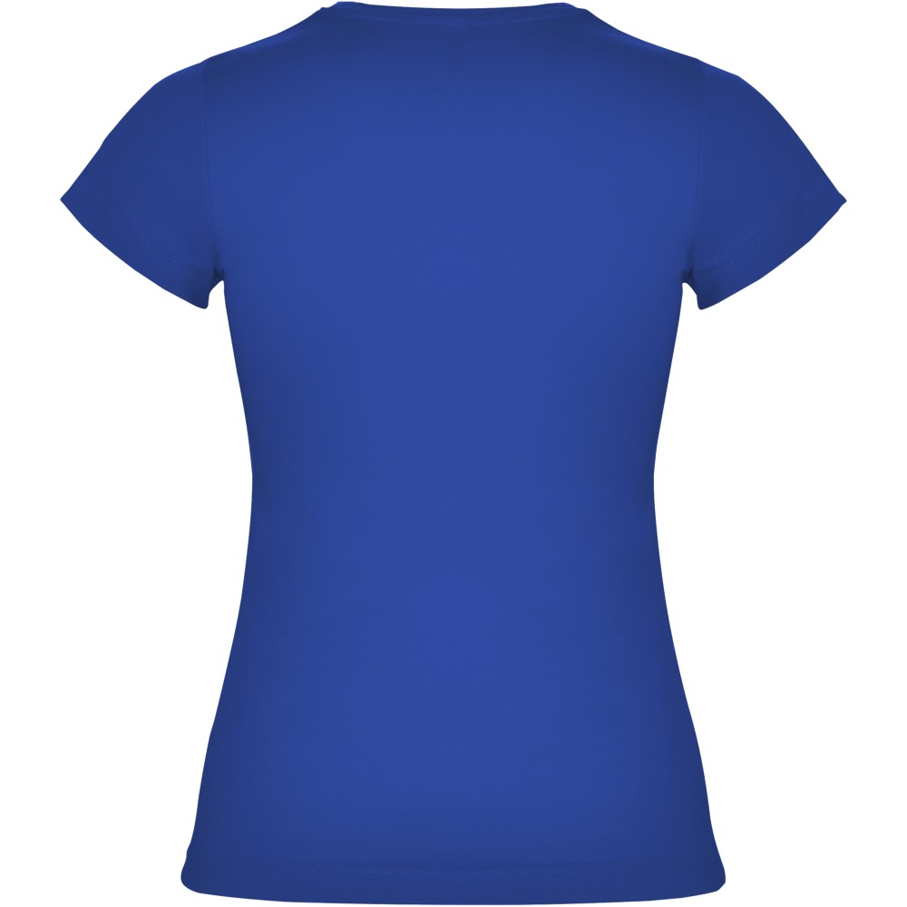 Rövidujjú, karcsúsított, oldalvarrott női póló. 1x1 dupla rétegű bordás nyak és válltól vállig tartó fedett varratok. 100% pamutból készült, 155 g/m2 súlyú, egyrétegű Jersey kötés.