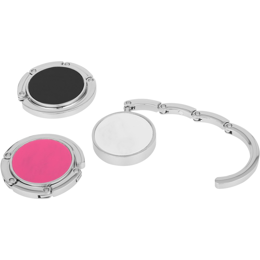 Összehajtható táskaakasztó, mellyel tisztán és biztonságban tarthatja táskáját. Az akasztót bármely felszín peremére felrögzítheti, max. 4,5 kg súlyt bír el. Fekete ajándékdobozban.