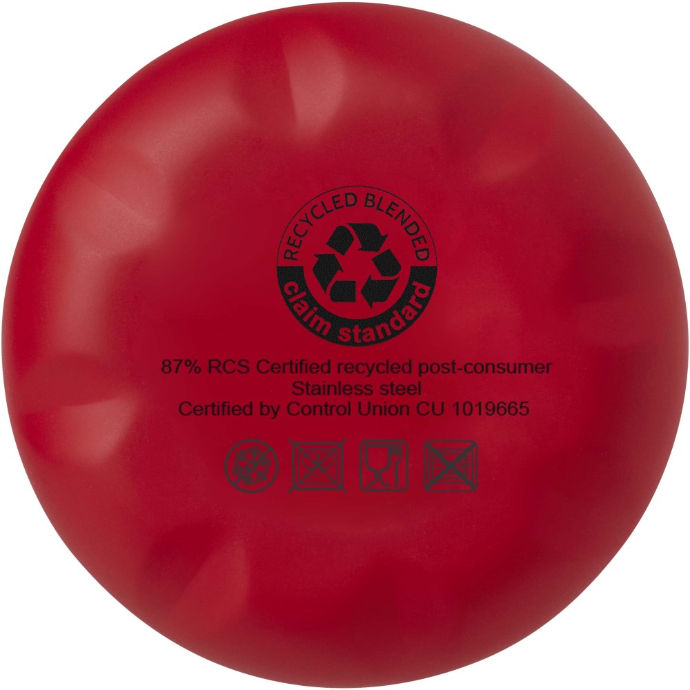 Vákuumszigetelt, RCS tanúsítvánnyal rendelkező, újrahasznosított rozsdamentes acél palack ikonikus dizájnnal, amely több órán keresztül tartja melegen vagy hidegen az italokat. A legtöbb pohártartóba illeszkedő talppal ellátott, elegáns megjelenésű vizespalack tökéletes promóciós termék. A német élelmiszer-biztonsági jogszabályok (LFGB) szerint, valamint a REACH-szabályozásnak megfelelően ftalát-tartalomra tesztelt és jóváhagyott. Űrtartalma: 500 ml. Újrahasznosított kartonból készült díszdobozban szállítjuk.