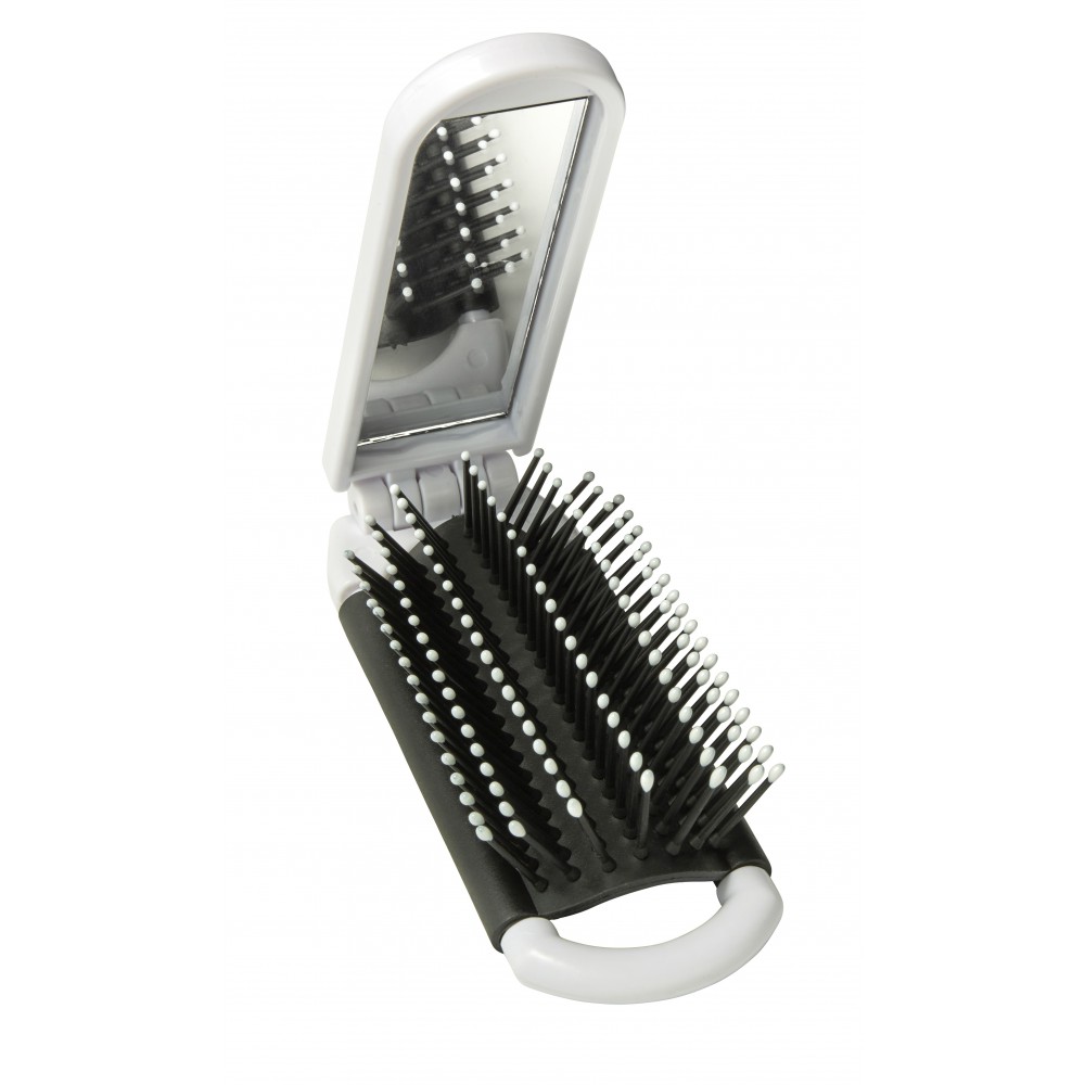 Összecsukható hajkefe tükörrel, fehér